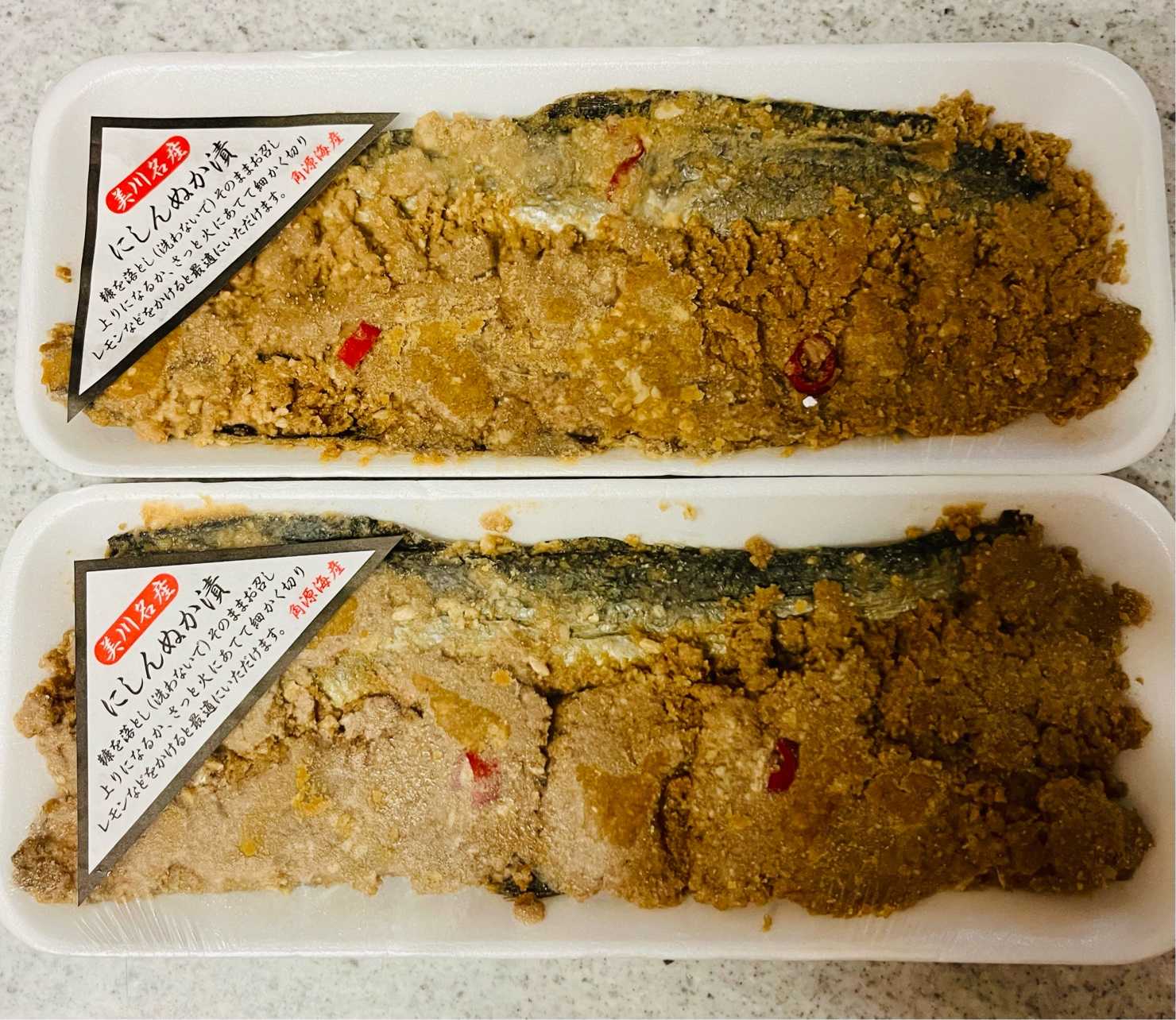 今日は息子を車で送って行った待ち時間に、ちょっと足を伸ばして、アルビス「albis」と言うスーパーへ行ってみた。私の住んでいる辺りには無いスーパーチェーンなので何か変わったものが売ってないかと?スーパーに到着すると、金沢のお酒や特産品が置いてあり、これはもしかしたら?と思い店内を探し回って見つけました!「こぬかにしん」身欠きニシンの糠漬けです。知人の方は「こんかにしん」と呼んでいました。自分が子供の頃、この知人の方からよくお土産でいただいて大好きになった金沢の食べ物です。近江町市場に売っているらしいです。この辺りでは、糠漬けの魚は、サバ、ナマのニシンなどは見かけるのですが、身欠きニシンの糠漬けは全く見た事が無く、ネットで注文したりしていました。全部買い占めようかと思いましたが、2パックに思いとどまりました(笑)糠を落として軽く炙って食べると書いてありますが、糠が美味しいので、このまま糠に少し焦げ目が付くぐらい焼いて、糠を温かいご飯に乗せて食べるのが、最高に美味しいのです。身欠きニシンももちろん美味しいので、お上品にスライスなどしないでこのままバリバリといただきます。白飯なら何杯でも食べられるし、日本酒などお酒のあてにも美味しいてすよ!しょっぱいのと、身欠きニシンの骨が気になる人にはむきませんけどね。にしん糠漬け 5袋セット 伝統100年の老舗からお届け♪/食品/激安/お中元/父の日/ふぐ/河豚/フグ/卵巣/ふぐの卵巣/ふぐの子/ふぐ子/ぬかづけ/糠漬け/粕漬け/塩漬け/ぬか漬け/かす漬け/石川県/訳あり/母の日/プレゼント/出産内祝い/結婚式/引き出物/お祝い/にしん糠漬け(へしこにしん)老舗製造元直販でお届けします♪【あす楽対応】【お取り寄せ】【へしこ】【通販】