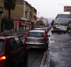 嵐に巻き込まれたようなカーニバルを体験した私だが今日はお祭り騒ぎの始まる前と、後のひとこまを紹介する。 パレードが始まる前に集まっていた、ボランティアの方達。蛍光色の制服がハデハデである。若い人から年配の方々までたくさん集まって打ち合わせというより、おしゃべりして笑っていたやっぱりイタリア人ですな~~パレードの最中に近くで交通整理をしていた巡査とその巡査に道を聞いていた女性。 あはっ。 よく見ると、巡査もコリアンドリをお見舞いされたのね。 仕事しながらも、結構楽しんでたりして・・・・ 嵐がどんなに激しかったかひと目でわかる道路。パレードが通った道路は、全部こんな感じでごみだらけ。コリアンドリが雪のようだ。 おい、キミ~~!!!クラウンに仮装したおこちゃま。コリアンドリ集めに必死である。パレードが終わった後、近くのバールでエスプレッソを飲んでから帰路についたのだが、そのバールはお菓子屋さん兼バールであった。 というわけで、カーニバルのお菓子を買ってしまった。Bugie(ブジエ)という油であげたお菓子。中がからっぽで、粉砂糖がかかっただけのものや中にジャム、チョコレート、生クリームが別々に入ったものなどお店によって様々である。 これもまたデブりもんである。(^0_0^) カーニバルだから仕方がないかっ。