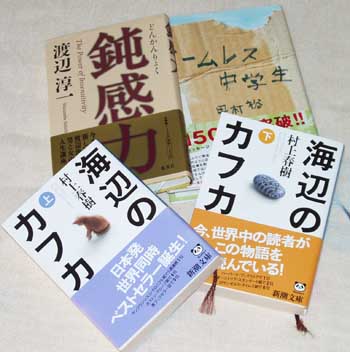 昨日日本に住む妹から、SAL便が届いた。今月に入ってから、「本送ったよ~~」とメールが入っていたので、いつ届くかな~~と楽しみにしていた。またまた丁度昼ごはんを食べている所へ、郵便配達のマリンおじさんが、ドアのベルを鳴らす。今回もそのまま外には置いていかず、大切に手渡しだ。郵便物をここまで大切に取り扱ってくれるマリンおじさんには、本当に感謝している。さて、3週間ほどで届いた郵便物を開けると 「海辺のカフカ」、「鈍感力」は妹が読んでいた本で、「ホームレス中学生」は、中学校に通う甥っ子が「これは是非おばちゃんに読んでもらいたい。」と選んでくれたようだ。渡辺淳一氏の作品は読んだ事があるが、田村裕氏、村上春樹氏のものはまだ読んだ事がない。村上春樹氏って人気作家だとは知っているのだが、何故か彼の作品を手にする機会が今までなかった。日本人作家の本は、イタリアでも翻訳されているが、村上春樹氏と吉本ばななさんは、イタリアでもなかなか有名みたいだ。 妹よ、ありがとう! ねーちゃんはまた生きる楽しみが増えたよ。 大切に読むからね~~~