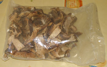 お昼ごはん用のサラダを用意しながら、普段あまり開ける事のない食器棚の下を開けてみた。サラダにツナ缶を入れようと思ったのだ。ツナ缶の後ろに、ポルチーニというキノコを乾燥してパックにしたのがあるのを思い出した。今年の夏、南アフリカに住んでいる知り合いがおみやげにと持って来てくれた物だ。彼らの知り合いがキノコの栽培のビジネスをしていて、乾燥させたものを友人におすそ分けしているようだ。この乾燥キノコの事はすっかり忘れていた。何気なく袋を取り出して、見てみる。 ・・・・・・・・変だな・・・・・・そして もっとよく見てみたガの幼虫と、成長したガが、袋についてる・・・・ (袋の右側 ・ でもはっきり見えないように写真を撮りました)幼虫は2ミリにもならない大きさだが、動いていた・・・・そしてこの透明の袋の中には、白いくもの巣のようなものが何重にもなって出来ていた。多分袋につめた時点で、虫が卵を残していったんだろう。そしてそのまま袋につめて、夏の間我が家の食器棚で眠り、秋になって幼虫になったんだろう・・・・・ぎゃ~~~っと叫んで、すぐにゴミ箱行きになったのは言うまでもない。しかしながら、この非常事態におよんで、どうにかしてポルチーニを救い出そうとするイタオヤには冷や汗が出た。300gはあったろう、この乾燥ポルチーニ。惜しかったけど、やっぱり今回はゴミ箱に直行してもらった。これで思い出したのだが、昔チュニジアに行った時、マーケットでスパイスを4種類くらい買ってみた。でも別に使うわけではないので、小さなビンにいれて、飾っておいた。それが年末の事。そして3月頃何気なく部屋の掃除をしながら、このビンに目をやると、中は幼虫だらけだった・・・・・・・これも上のポルチーニと同じ事。いつの間にか虫が卵を産み付けておいて、それが何ヶ月かあとに孵るんだろう。工場で生産されたものが100%安心とはいえないが、なんとも複雑な気持ちになる出来事だった。