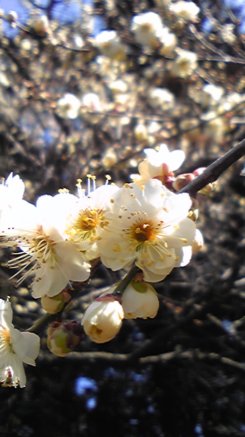 このところの暖かな陽気で、梅も八分咲きだとか。