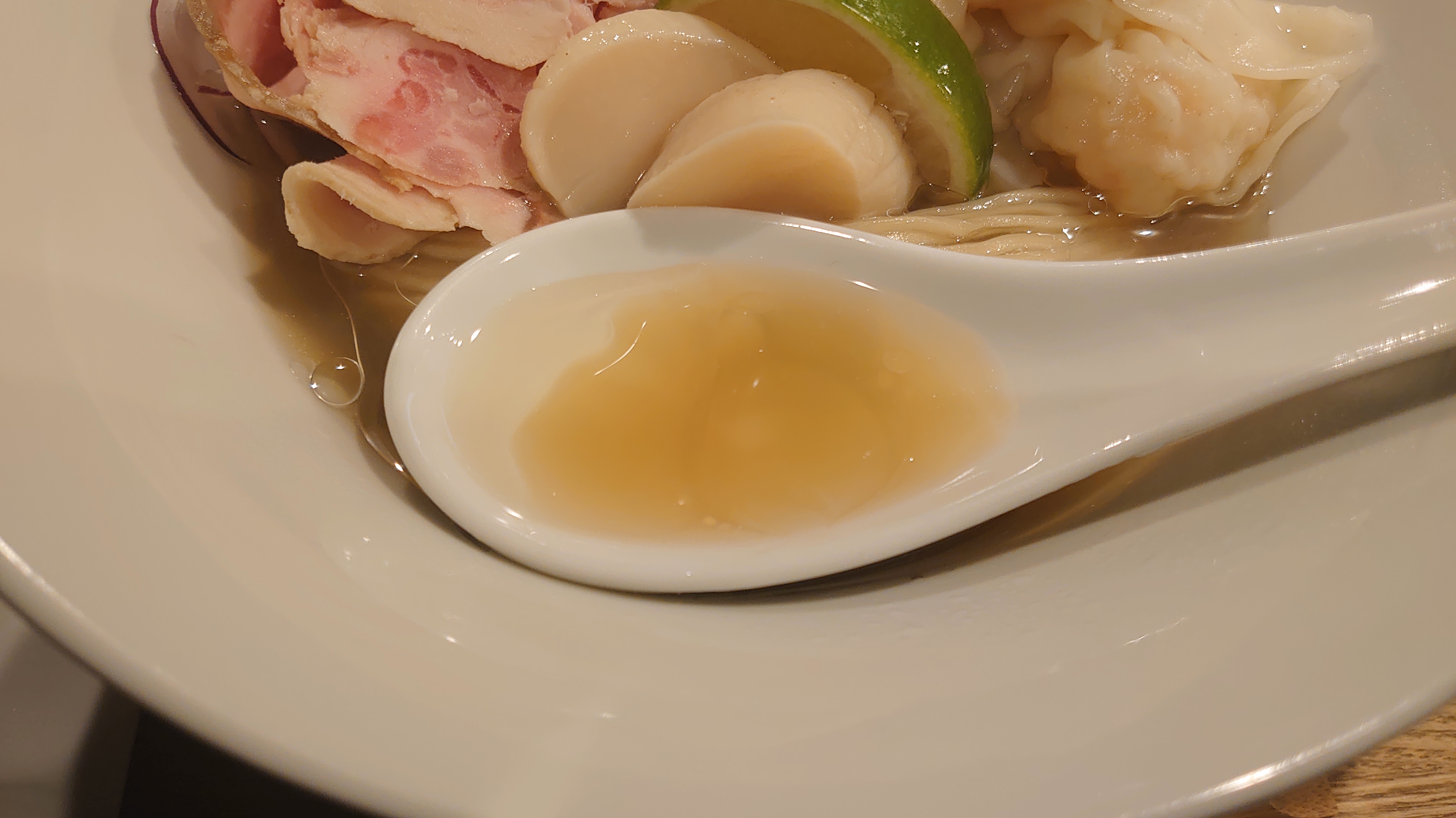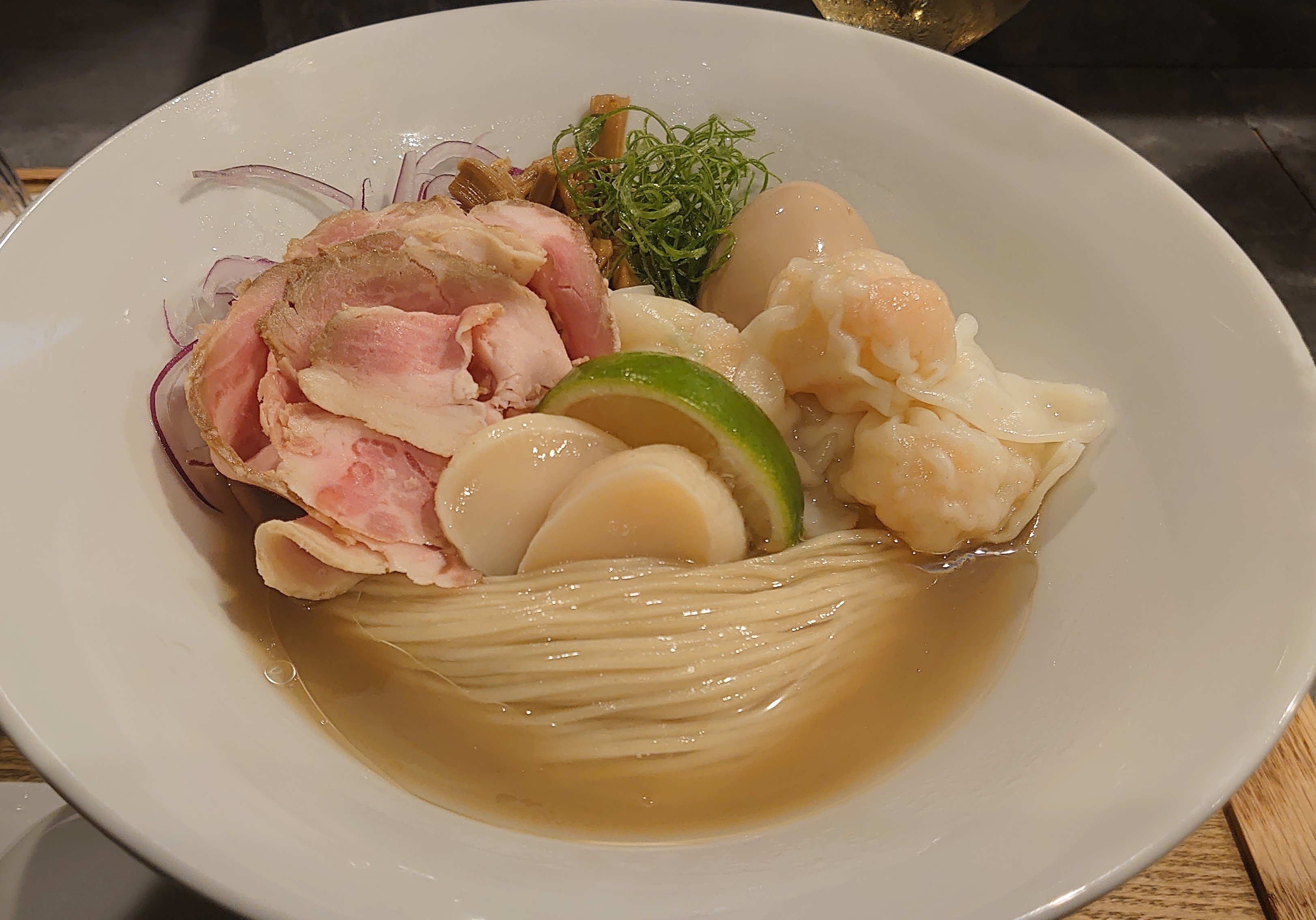 ホタテのコンフィ、神威豚チャーシュー、味玉
