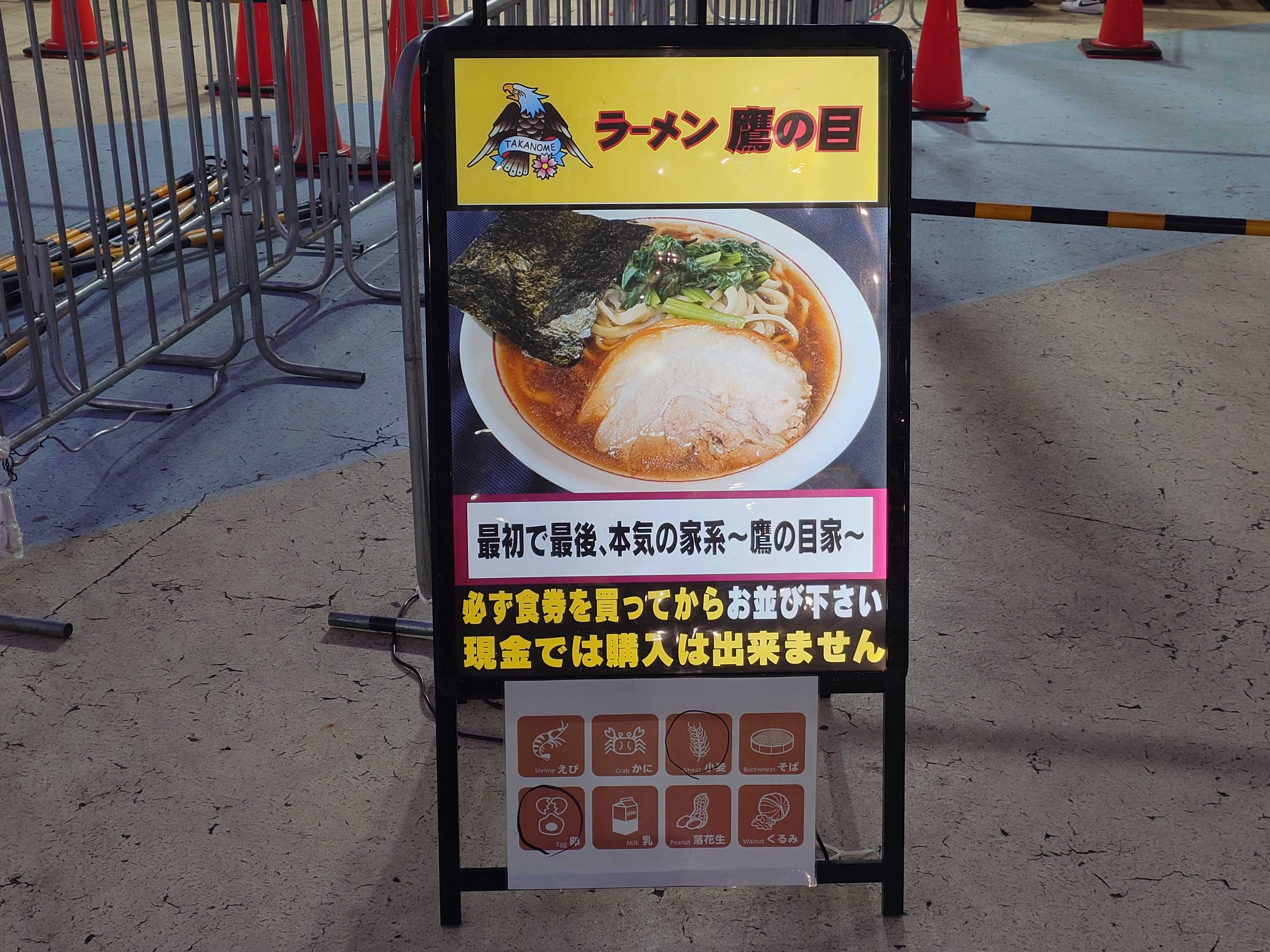 ラーメン鷹の目入口看板。他の店舗と比べ少し左が暗いです🤔