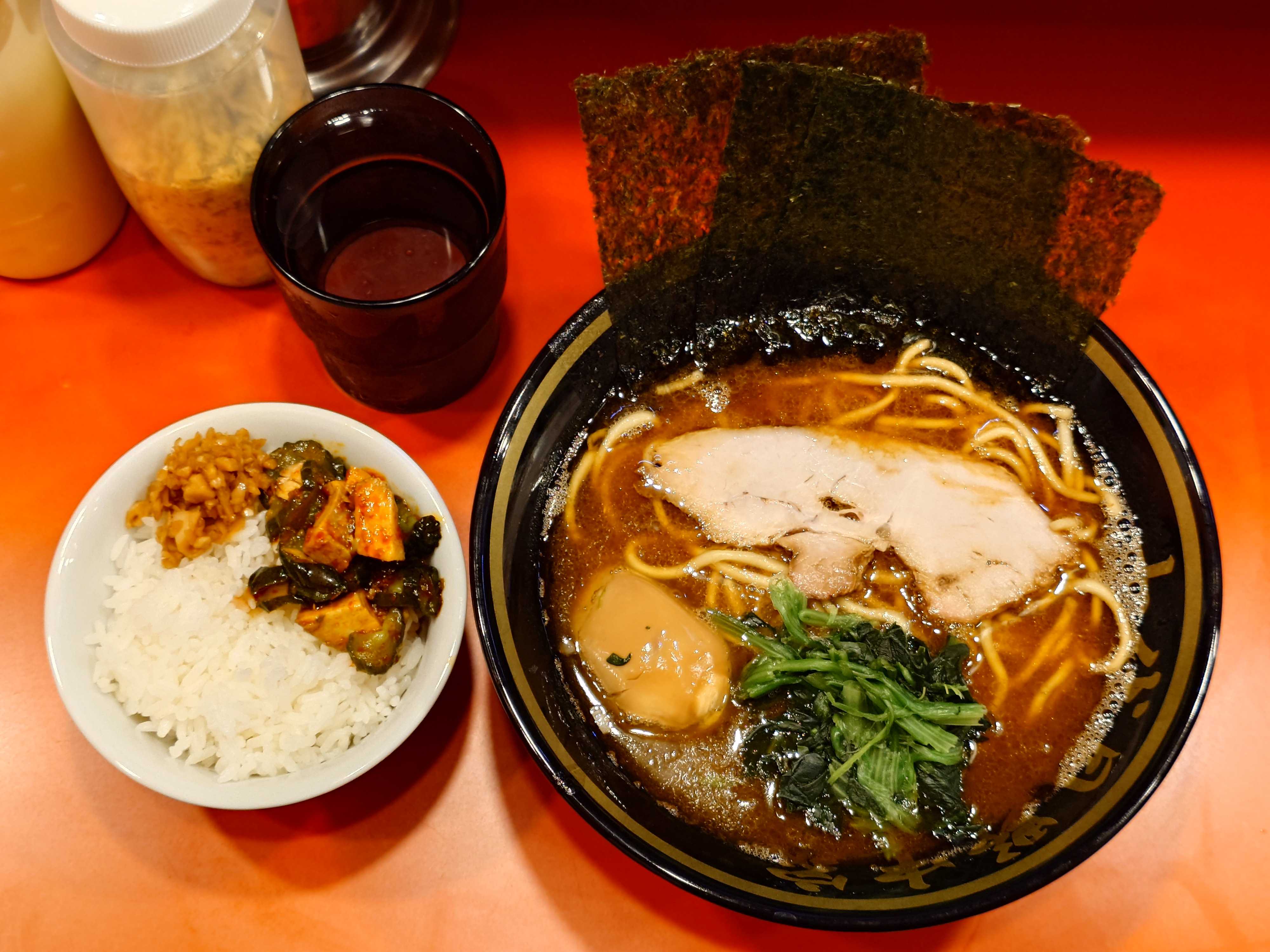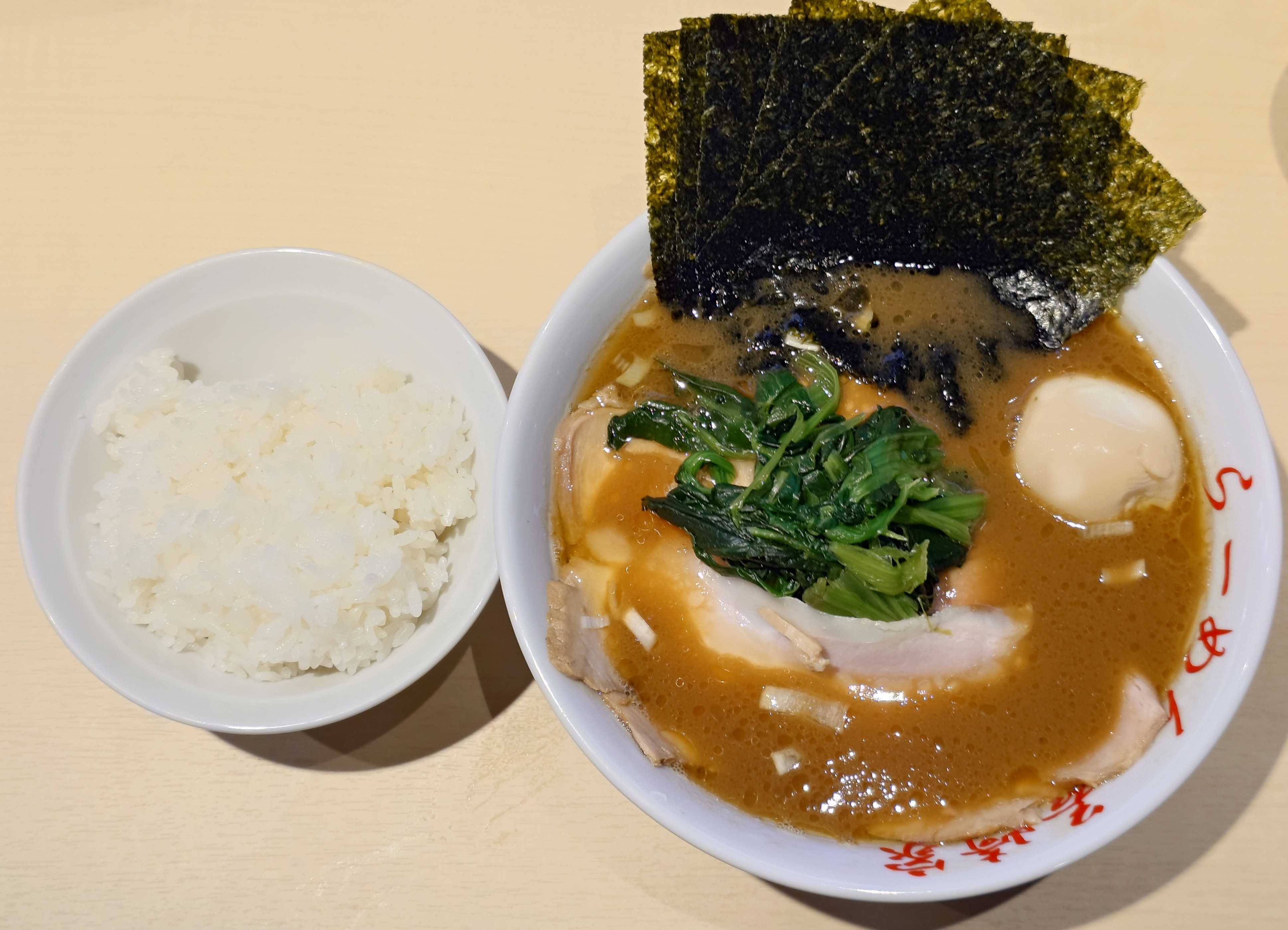 🟨王道家直伝 との丸家 八潮店〒340-0801埼玉県八潮市八條1612-18/1(金)から8:00〜23:00の通し営業が熱血START💪早朝ラーメンがスタート💥だが朝専用のメニューはないね🤔開店凹→開店時5人→以降続々入店→店内落ち着いてきたグエン店長ワンオペと思いきや、途中〜前田さんと2人体制😋直伝ラーメン+ライス↑直伝ラーメン国産豚骨+鶏ガラに鶏油を回しいれた濃厚でパンチの利いたキレのあるスープに王道家の自家製中太麺が絡んで美味い😋↑直伝ラーメントッピングは、海苔×8枚、燻製チャーシュー、味玉、ほうれん草↑ライス🍚に無限にんにく、刻み生姜をのせて大判な燻製チャーシューで🌮巻いても美味い😋無限にんにくは、特製のカエシに1日寝かしたパンチある味変アイテムでライスのおともに😋※無限にんにく、刻み生姜、無臭にんにく、グリーンにんにく券売機の隣の冷蔵庫から、仕切り皿にセルフ式で取るシステム※卓上にはラーメン酢、ラーメン胡椒、マヨネーズ。↑直伝ラーメンはデフォルトで海苔×8なのでお得感ある、店内はライスよりも半玉子まぶし、叉焼まぶしが人気😋4mmの千切り刻み生姜は爽やかな香りと辛味がよく(個人的には)ラーメン酢と共に後半オススメの味変😋↑草加流山線沿いにあります。「朝ラーメン始めました」の、のぼりが目印↑建物外観最後まで読んでいただき、ありがとうございました。 #王道家#との丸家#八潮店#家系#家系ラーメン#直伝ラーメン#刻みしょうが#無限にんにく#新三郷#八潮団地#草加流山線#八潮八條#八潮団地通り#平方東京線#外環