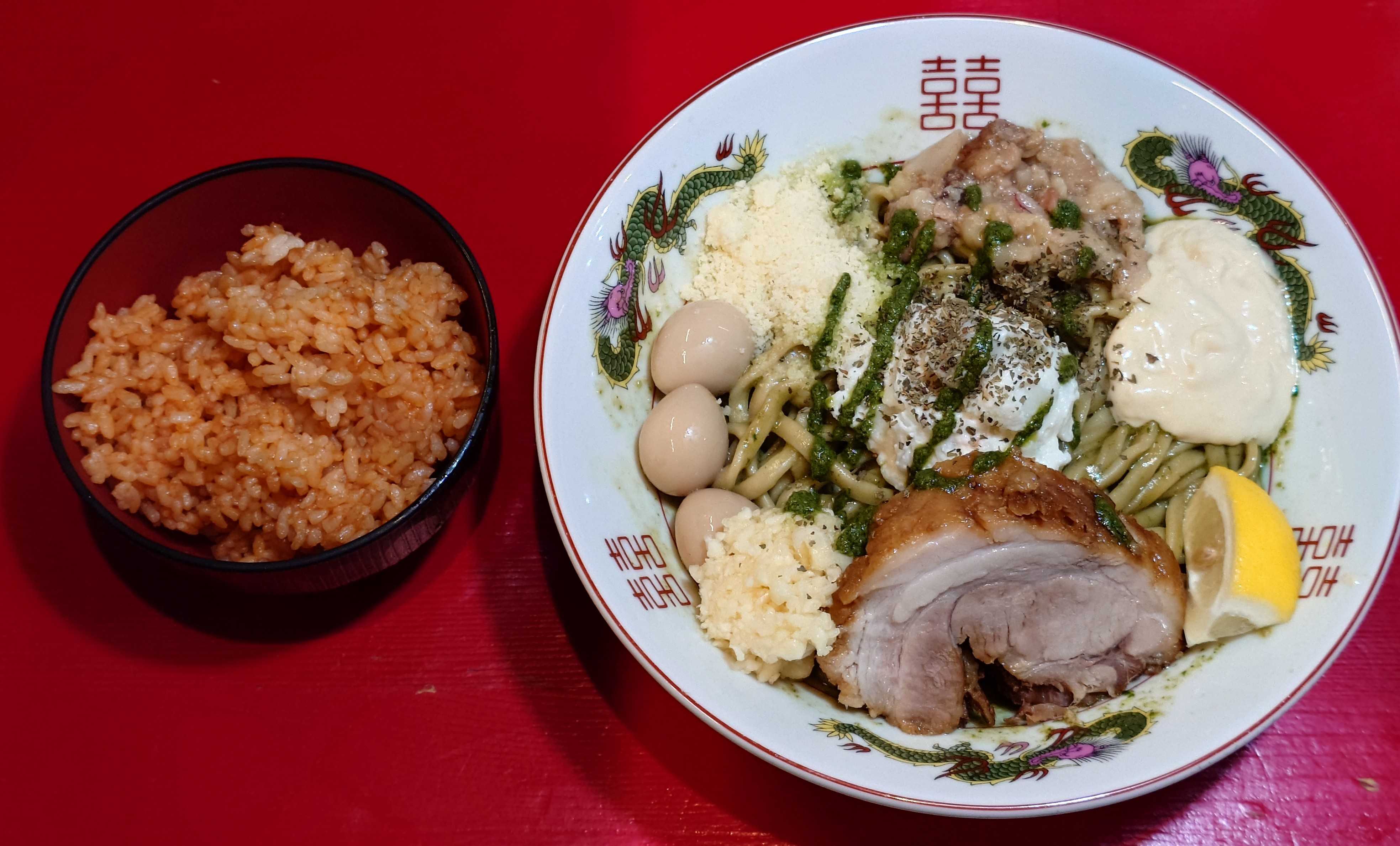 🦅ラーメン鷹の目 北千住店東京都足立区千住2-29🇮🇹ジェノベーゼ(3→2)+ケチャップライス🗣️辛揚げ以外全マシ(北千住店、東陽町店の土日祝限定)🦅鷹の目×🇮🇹イタリアの限定で断トツに美味い🌿ジェノベーゼ過去、蒲田店でのみしか販売をされていないので鷹の目の常連さんでも食べた事がない方、多いと思います😋↑ジェノベーゼ(3→2)+ケチャップライスオリーブオイル+大葉ソースのオイリーなタレに鷹の目の自家製のワシワシ麺が絡んで美味い😋↑デフォルトトッピング豚1枚、ポテトサラダ、オリーブオイル、ジェノベーゼソース無料トッピングニンニク、アブラ、ガリマヨ、粉チーズ、カットレモン有料トッピングケチャップライス↑ケチャップライスを準備。ケチャップライスは100円券でOK(追い飯は、ケチャップライスじゃなくてもライスでもOK)↑〆は、余ったタレにケチャップライスを投下して美味い😋茶碗1杯のケチャップライスを全て使わずに、半分くらい投下するとタレに絡んで美味い😋(画像は少し入れ過ぎてます笑、少量の方がタレに絡みます)ケチャップライスそのまま食べても美味いです絶妙な味😋↑無料トッピング参考にして下さい。↑限定④となってますが、正しくは限定⑤+100円券です!(現在は修正されていますので、そのまま買って大丈夫)↑北千住店は行列の並び方が、スペースありますので画像を参考にして並びましょう、この紙が先頭です😋↑建物外観、開店前の画像、夜の部PP最後まで読んでいただき、ありがとうございました。#ラーメン鷹の目#鷹の目#北千住店#ジェノベーゼ#オリーブオイル#ポテトサラダ#ポテサラ#ケチャップライス#追い飯#限定#土日祝限定#自家製麺#二郎系#二郎系インスパイア#千住ほんちょう商店街#北千住#北千住グルメ#足立区#足立区グルメ#麺グルメ