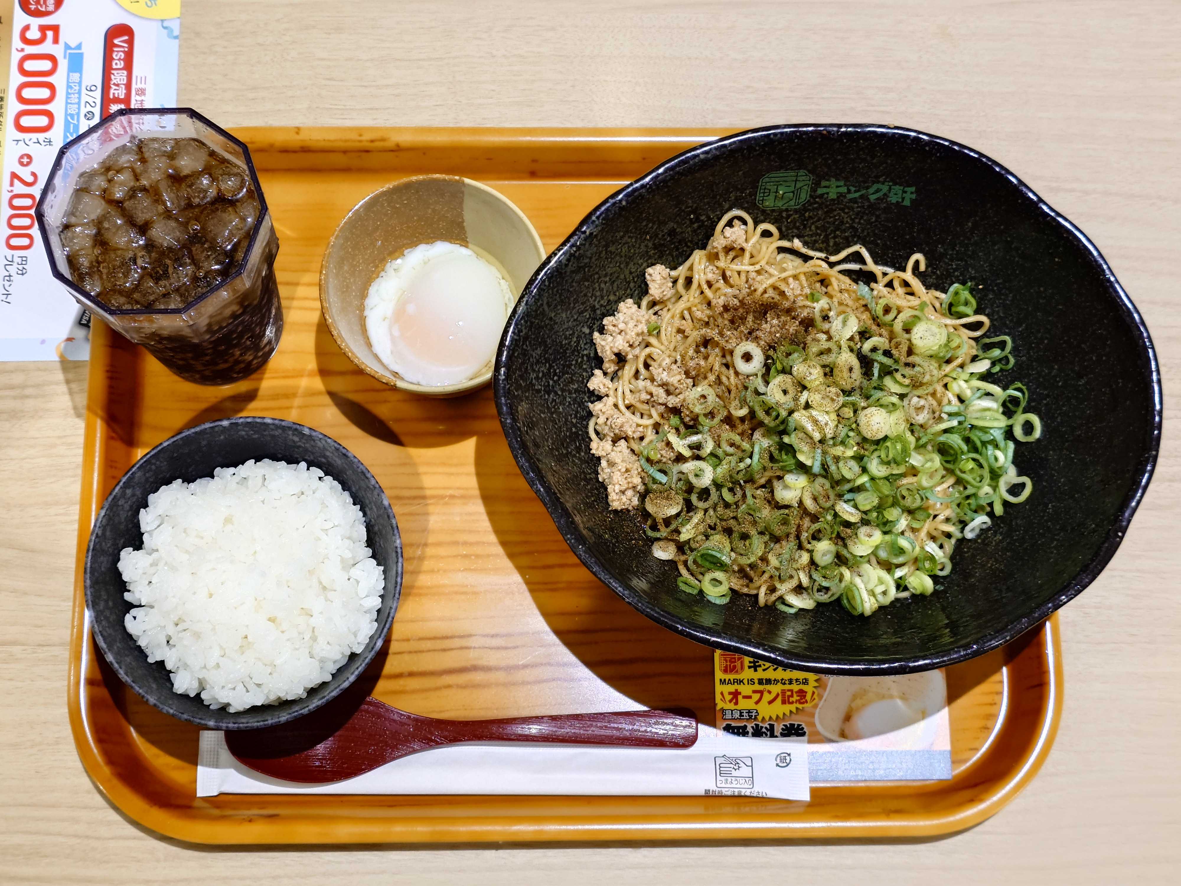 🟩汁なし担担麺専門店 キング軒 葛飾かなまち店東京都葛飾区東金町1-10-1 MARKS IS 葛飾かなまち 323区画広島の有名店 汁なし担担麺専門 キング軒が今日オープンのMARK IS 葛飾かなまちに登場💥キング軒セット汁なし担担麺、ライス、温泉玉子、ソフトドリンクのセット行列ができてたので、私の場合は並んでる時に店員から説明有だから、スムーズに行きましたが、(仮に)行列ができていない場合、選ぶ項目が多くて迷うかも🤔キング軒セットの場合、まず汁なし担担麺の辛さを選ぶ、ライスのサイズを選ぶ、そしてソフトドリンクを選ぶ、これを1つの画面でするのであらかじめ、決めておいた方がスムーズに行きますね😋↑キング軒セット汁なし担担麺、ライス、温泉玉子、ソフトドリンクのセット汁なし担担麺は辛さが選べ、私は3辛を選択、ライスは中ソフトドリンクは、ペプシコーラを選択。↑食べる前に必ず30回以上混ぜるみたい。混ぜるとこんな感じ。山椒の香り、痺れを味わいながら、タレ、辣油に絡んだ細麺が美味い😋※追記フードコートなので、店とは違い食べ方のレクチャーは、テーブルなどに貼っていません。注文口に書いてある「おいしい食べ方」は撮影はする事。「おいしい食べ方」を配布してる方はフードコート内の、通行人には渡して、これから食べる、行列に並んでる方に渡さないのが謎🤔↑温泉玉子につけながら、すき焼き風に食べるのもオススメ😋↑キング軒セットの場合、追い飯で店舗前の調味料は必須。担担ライス用たれ、酢、刻み唐辛子、朝挽き山椒なと有。これも店の方から説明がないのですが、店の対面に有。(これは、たまたまかけている方がいたのでわかった)初日でフードコートの席が空いていなくて、キング軒から1番離れた列の席に座ったので凄い面倒汗↑担担ライス用のタレ、お酢をかけると、こんな感じです。朝挽き山椒もねぎのとこにかけて見ました😋※麺を食べると、タレはなくなります。↑🍚ライスドボン、ライスは中サイズを選択しましたが、美味しく食べるなら(絡みやすさ)は小がオススメです😋↑混ぜると、こんな感じで担担ライスが楽しめます😋タレとの絡みを考えると、もう1回かけたかったわ汗(初日で席が空いてなくて、運ぶのも大変なんですよね🤐)やっぱりフードコート初日に行くもんじゃないと痛感😥(北綾瀬の松戸富田製麺の経験を生かさなかった自分が悪い)↑クーポン配布中。東京店、神田スタンド、金町で使えます。↑入口看板お支払い方法は、現金かクレジットカードのみです⚠️↑MARKIS葛飾かなまちのオープン初日という事でMARKIS葛飾かなまち入口にTBSテレビが来ていました😋↑金町駅北口からMARKIS葛飾かなまちへは理科大学通り。途中、名店ramen club トトノエもあります。↑名店、つけ麺和出身のつけ麺 一滴も理科大学通りにあります。↑これが邪魔なんだよね、人通りが多い、車道歩かせる気❓️🚶しかも警備員や係員もいない、事故があっても知らないよ🤷↑意外と入口は狭いです。両サイドに係員いてさらに狭い。↑祝花最後まで読んでいただき、ありがとうございました。 #汁なし担担麺専門キング軒#キング軒#担々麺#担担麺#汁なし担々麺#汁なし担担麺#MARKIS葛飾かなまち#マークイズ葛飾かなまち#東京理科大学#オープン#新店#追い飯#刻み唐辛子#朝挽き山椒#唐辛子#山椒#金町#金町グルメ#葛飾区#葛飾区グルメ#麺グルメ