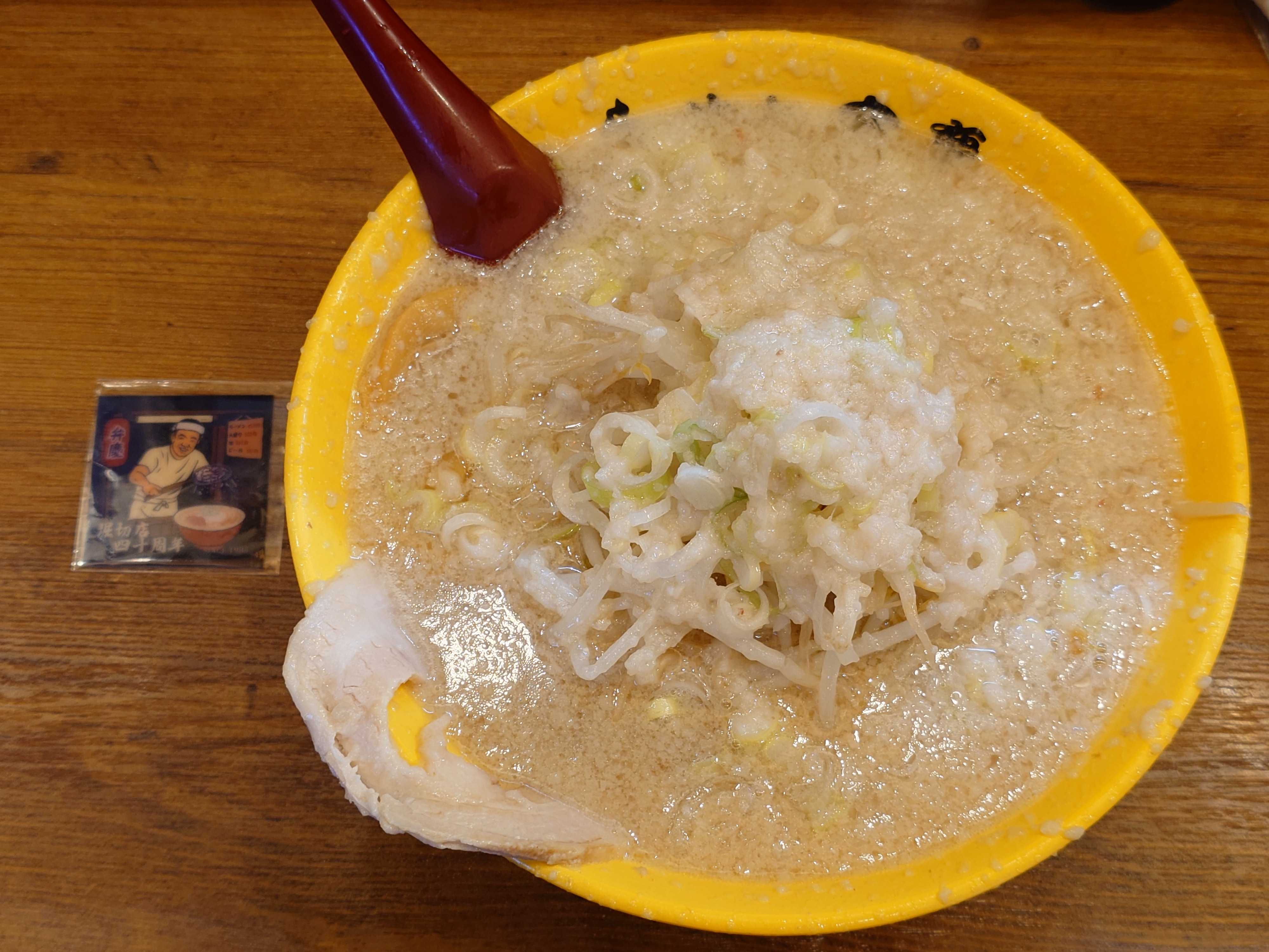 👺らーめん弁慶 堀切店東京都葛飾区小菅2-21-13㊗️らーめん弁慶 堀切店 40周年おめでとうございます🏵️らーめん弁慶の1号店⚡️しかし本店は浅草にあります😅40周年記念イベントは、創業価格の450円で販売です😋建物の老朽化で、一昨年位にリニューアル工事しましたが、奥の方をスタンド形式、手前の方を座席にしましたが今日ひさしぶりに行ったら奥のスタンド(立ち食い)部分も、座席(5席分)になってたので、今は立ち食いはしてない😋リニューアル当時、1人1人に立つか座るかを聞いてたので、店員が少ない時はオペレーションきついかもと思ってた🤔堀切店リニューアルの時に販売した回数券は今回はなし、堀切店リニューアルの時になかったグッズ販売ガチャは有会長、社長、ニャット店長、ルックさん+グッズ販売の人行列は20人、着丼までは50分、らーめん 🗣️ギタギタ注文↑らーめん、🗣️ギタギタ背脂ギタギタの食べ終わるまで熱々スープに、浅草開化楼のオリジナル麺が絡んで美味い😋トッピングは自家製豚バラチャーシュー、もやし、白ねぎ、メンマ↑らーめん弁慶の自慢の酸味がきいた豆板醤での味変が美味い😋↑らーめん弁慶自慢の特製すりおろしニンニクでも味変美味い😋↑40周年記念のらーめんの券売機のボタンは左上にあります😋↑堀切店リニューアルの時になかったグッズ販売+ガチャも有浅草店周年の時に、ガチャが全てキーホルダーだったので今回はやりませんでしたが今回のキーホルダーは浅草周年の時と違うバージョンです😋↑40周年、らーめんに限り450円の販売です😋↑40周年記念ステッカー(食券回収時にもらえます)背脂チャッチャする感じに動くステッカーになっています😋↑建物外観最後まで読んでいただき、ありがとうございました。#らーめん弁慶#弁慶#周年#40周年記念#40周年記念イベント#らーめん#ギタギタ#背脂チャッチャ#浅草開化楼#堀切店#堀切菖蒲園#堀切菖蒲園グルメ#葛飾区#葛飾区グルメ#麺グルメ