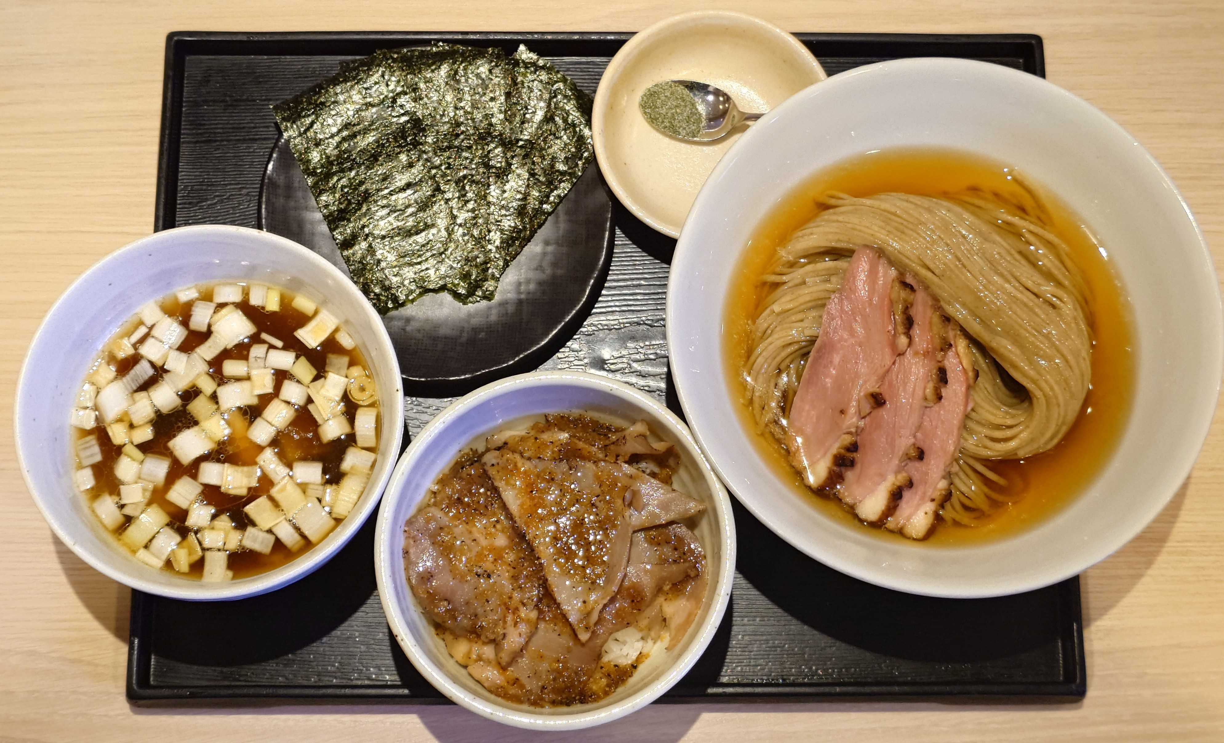 🟦麺屋一燈東京都葛飾区東新小岩1-4-179月の季節の限定Ⅱ、インフレに立ち向かうコスパ重視限定😮鴨出汁中華蕎麦麺屋yoshikiの阿部さんがよく使う蕎麦風細麺を使用した鴨せいろ風なつけ蕎麦。10月の予定でしたが、10月が忙しいから前倒しでの提供に😮並盛は200g、中盛は300gで9/25(木)〜終日販売中鴨南蛮風つけそばローストポーク丼(アプリCP)+海苔(アプリCP)↑鴨南蛮風つけそばローストポーク丼(アプリCP)+海苔(アプリCP)国内産鴨からとったふくよかなスープに、鰹と昆布とガゴメ昆布水に浸る、蕎麦風細麺が絡んで美味い😋トッピングは、マグレドキャナール胸肉(マグレ鴨)、アオサ、豚肩ロース端肉↑マグレドキャナール胸肉(マグレ鴨)が3枚、柔らかくて美味い😋↑アオサ海苔と自然天日干しの塩↑豚肩ロース端肉入りのつけ汁スープ割(鰹+昆布+煮干+干し椎茸)で割っても美味い😋↑ローストポーク丼、(アプリクーポンで80円で食べれます😋)↑海苔×5枚(男性専用アプリクーポン、期限は9月30日まで)↑最後は、つゆに昆布水+鰹出汁で割って〆ても美味い😋スープ割(鰹+昆布+煮干+干し椎茸)で〆でも美味い😋↑45分前で4番↑建物外観最後まで読んでいただき、ありがとうございました。#麺屋一燈#一燈#鴨出汁中華蕎麦麺屋yoshiki#鴨南蛮風つけそば#ローストポーク丼#つけ麺#つけそば#海苔#限定#限定メニュー#9月の季節の限定#アプリ#アプリクーポン#男性専用アプリクーポン#公式アプリ#新小岩#新小岩グルメ#葛飾区#葛飾区グルメ#麺グルメ