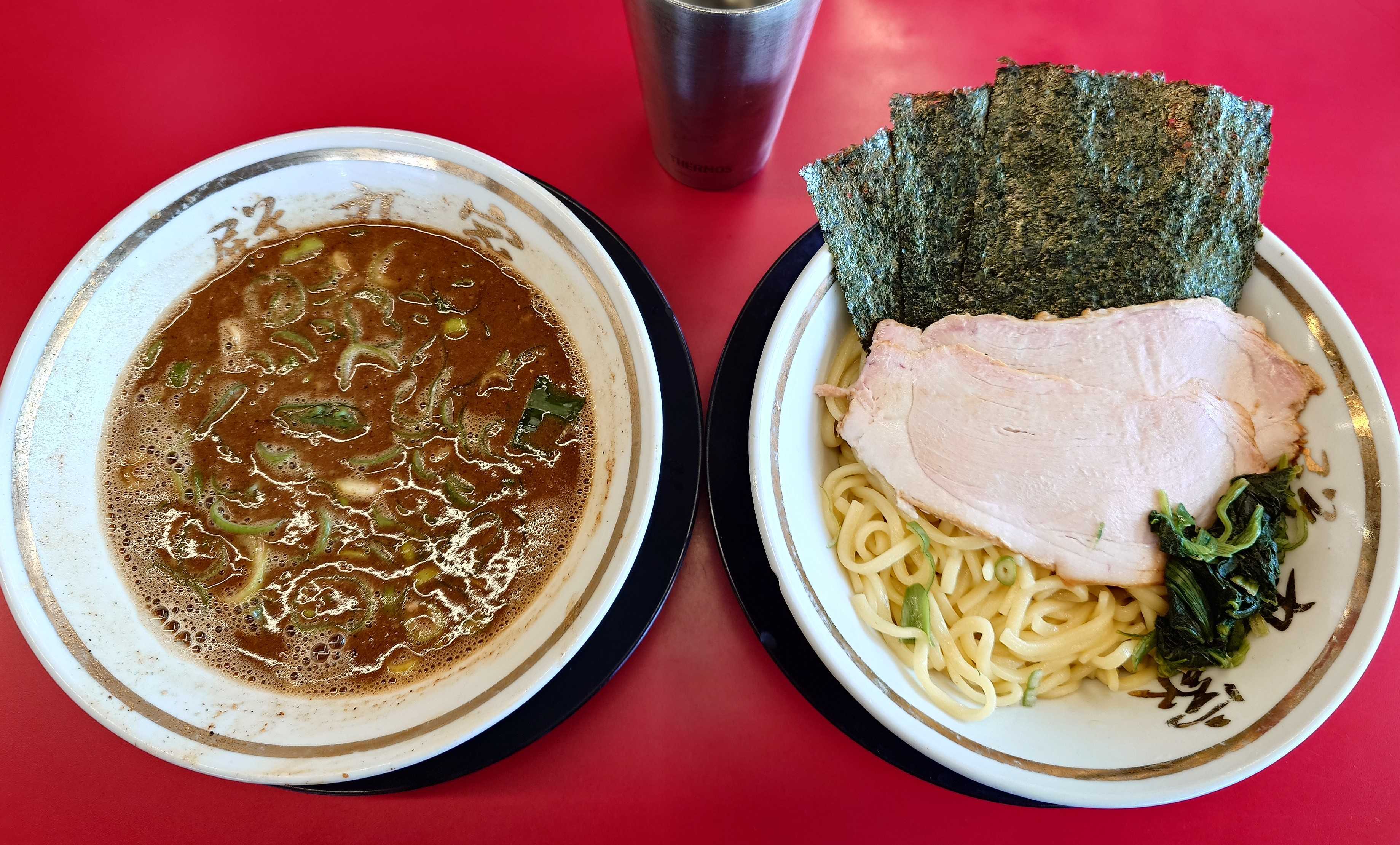 🟨王道家直伝 との丸家 八潮店〒340-0801埼玉県八潮市八條1612-18/12(火)〜全店で販売 魚介つけめんSTART💥つけ麺の食券を購入して🗣️魚介でOK、濃いめ、多め申告魚介つけめん(濃・多)+🤳Wフォロワーサービス🤳八潮店 薬味ねぎ🤳香取店 燻製チャーシュー 1枚今日(8/14)は八潮店と香取店でWフォロワーサービス開催!八潮店は薬味ネギ、香取店は燻製チャーシュー1枚と太っ腹薬味ねぎは100円、燻製チャーシューは確か2枚で200円、だからフォロワーサービスだけで、200円もお得になる😋明日(8/15)以降、Wフォロワーサービスをやるかは不明との丸家八潮店のXの発信を確認して下さい🤳↑魚介つけ麺 いわゆる、またおま系ではなく、豚感は弱めでかえしが強いザラザラ感もある、節系かなりきいた、濃厚な魚介つけ汁に王道家自家製中太麺が絡んで美味い😋つけ汁の量は多い😅🍚ライス注文しなかったけど、海苔3枚、燻製2枚あるなら、頼んだ方が良かった感じ、つけ麺だけだと腹五分目くらい🫄↑トッピングは、燻製チャーシュー2枚、海苔3枚、ほうれん草(燻製チャーシュー1枚は🤳Xでとの丸香取店フォロワーサービス)↑薬味ネギが入っている(🤳Xの八潮店のフォロワーサービス)↑つけ麺ののぼり↑建物外観最後まで読んでいただき、ありがとうございました。 #王道家直伝との丸家#王道家#との丸家#家系ラーメン#八潮店#つけ麺#つけめん#魚介#フォロワーサービス#八條#八潮#八潮団地#平方東京線#草加流山線#八潮団地通り
