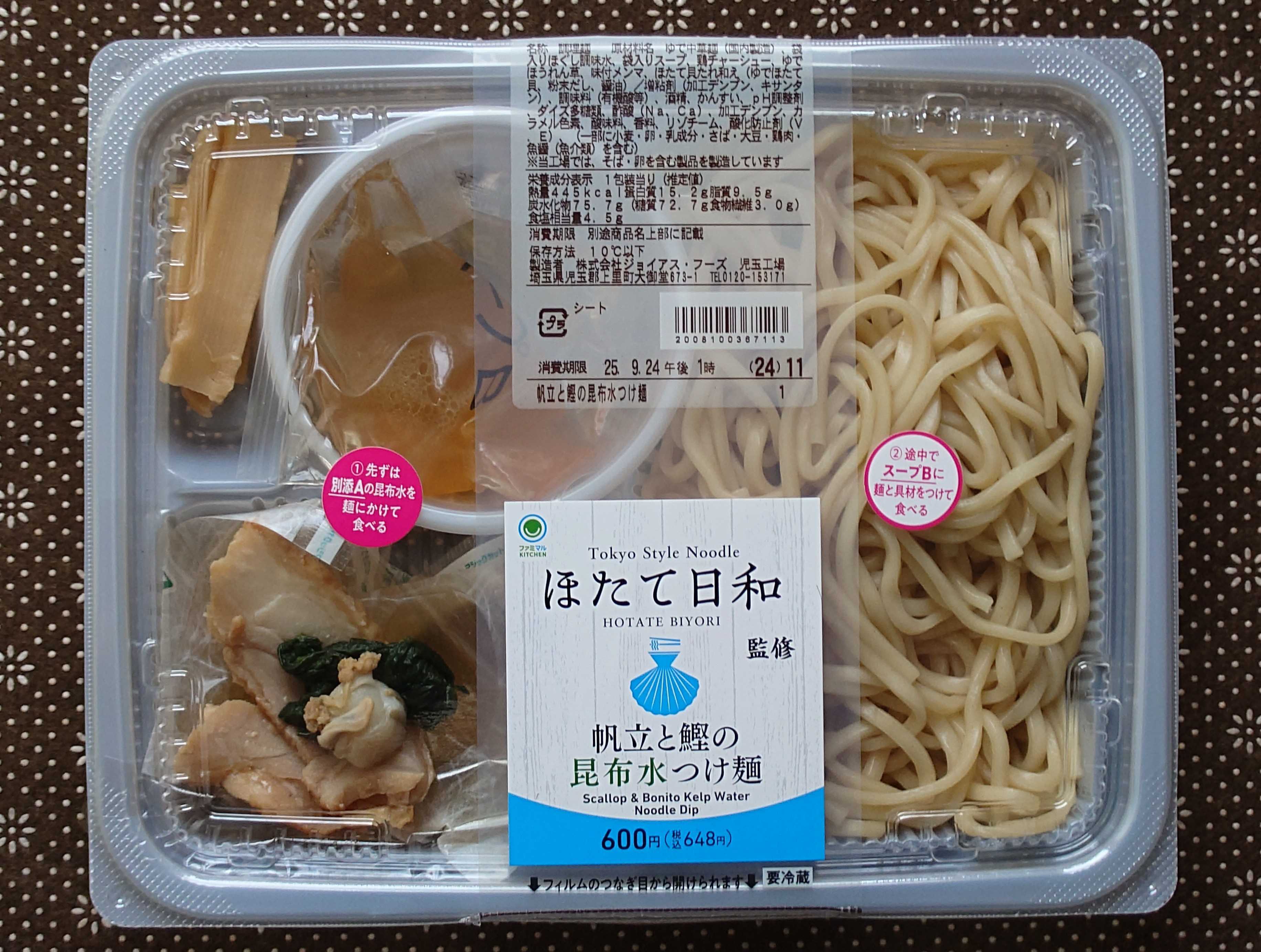↑ほたて日和監修 帆立と鰹の昆布水つけ麺まずは蓋に貼ってあるシールの方に注目①先ずは別添Aの昆布水を麺にかけて食べる②途中でスープBに麺と具材をつけて食べる↑蓋を外すと、先程のシールに書いてる事は見えないので注意⚠️(私は見ないで蓋を外したので、慌てて蓋を探す二度手間に)↑スープAとスープBがありますね↑トッピングはほたて、チャーシュー、ほうれん草コンビニ麺だからか、麺はかたくて食感はイマイチですね😮💨昆布水につけて食べるよりも、全てスープBの方が美味い😋スープB(つけ汁)はほたてのエキスがきいて、美味いです😋↑外袋 ※関東のみの販売なんですね。最後まで読んでいただき、ありがとうございました。#TokyoStyleNoodleほたて日和#ほたて日和#昆布水つけ麺#つけ麺#つけめん#ファミリーマート#コンビニ#コラボ#麺グルメ#関東限定