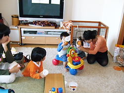 先週末の大雨&強風の中、felimo同期のchapangelaさんとミユキシュウさんが遊びに来てくれました本当にあんな悪天候の中、chapangelaさんは愛娘ちゃんも一緒に、ミユキシュウさんもレッスンが終わってからすぐに駆け付けてくれて、久々の同期会となりました。これまでのレッスンでの苦楽や、これから来るクリスマスイベントの情報交換その中、うちの息子とchapangelaさんの愛娘ちゃんがおもちゃを取り合ったりとバタバタ感もありましたがでもやっぱり、同期の皆さんが頑張っているのがわかると、私の中にも沸々とエナジーが沸き立ってきましたランチもお茶も終わり・・・話題が尽きない中、今回わざわざうちに集まった目的がイングリッシュタッチのお試し会でもあったので、早速、もう扱いに手慣れた息子が手ほどき周りが驚くほど、パパパっと操作する息子。息子が凄いのではなく、本当にイングリッシュタッチの操作性&カリキュラムがよくできているのですchapangelaさんの愛娘ちゃんも一緒に二人でノリノリで踊っていましたうちの息子は飽きることなく、朝、昼、夜と1日3回に限定してイングリッシュタッチで楽しく英語に触れています。一般的に2000時間英語に触れないと英語を話すようにはならないと言われますが・・・まだまだ2000時間には足りないものの、イングリッシュタッチに出てきたフレーズを使って言っていることはおおむね理解できている様子。単語レベルなら話すことも出てきましたこんな教材があるこの時代の子供たちは恵まれているな~と感じます。同期会はまだまだ話し足りない~!!って感じで、保育園のお迎え時間や帰宅時間が来てしまいましたが今度は同期5人全員集合や、子供たちの初対面など、まだまだ色々な同期会ネタは尽きない感じでしたイングリッシュタッチのHPはこちら