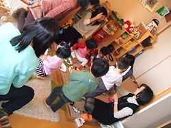 2010年も明けてすでに1カ月が経過しようとしていますねこんな調子で日々が過ぎて行ったらあっという間に子供も成人式かもなんて考えるとちょっと焦ってしまいました。ブログも更新しようと思いつつもなかなか手が回らず・・・2010年はもっとブログをマメに更新するように頑張りたいな~って思っています。いや、決意しないとダメですね。決意します第4ターム3回目のレッスンも先週から始まりました!レッスン内容1. The Hello Song2. Sing a Song! -Eentsy Weensty Spider3. テキスト&ロールプレイ -病気編4. Today's Activity -Let's play with jump rope!5. Let's Chants -Pick up your pencil6. Sing a Song! -Twinckle, twinckle little star7. Story Time8. The Good-bye Song久しぶりにEenntsy Weentsy Spiderを歌ったら・・・みなさん、手遊びもつけてちゃんと上手に歌えるようになっていて、お正月から私にとっては最高のお年玉って感動するくらいでした最初にレッスンで取り上げた時には『早い』や『難しい』って声が多かったのに、みなさんが楽しくCDを聞かれたり歌われている成果だな、って感心しました。テキストでは病気編とのことで、いざ、病気となると実際には英語で話しかけるような余裕はないだろうけど・・・でも、身近なことを英語でこうやって表現するんだっていう学習ができたことに楽しさを覚えられたママも多かったようです。身近なことほど、脳も吸収してくれるのが早いものですしね。今回ご紹介している絵本はこちら多田ヒロシさんの人気の作品『だれかしら』を英語に翻訳して朗読CD付きで販売されています。日本語バージョンと比べると翻訳の面白さが分かったりします。この本だとドアをノックする音の表現は特に英語と日本語の微妙なニュアンスを比べられて、面白いですよこの本は表参道にある『クレヨンハウス』というお店で買いました。ここはB1にはオーガニック レストラン、1Fには椅子と机も置いてある子供向けの本屋さん、2Fは木などの素材中心のおもちゃ屋さん、3Fは大人向けの本屋さんで構成されていて、全体として自然派嗜好な方にオススメのお店です。小さな子供さんのいるお友達などへのプレゼントとしても、とてもいいものが置いてあって、喜ばれるものが見つかるかもしれませんよただ、息子が小さい時はまだしも、最近だとおもちゃ屋さんからなかなか離れず、私が本をゆっくり見るとはいかなくなってきて近々また、主人と一緒に(=息子のお守)行きたいな~って思っています。表参道は下丸子からだとベビーカーでの電車の乗り継ぎはちょっと大変ですしね。まだ小さいお子様連れだと、どなたか一緒に行かれることをオススメしますまた子連れで楽しめる、またはママが楽しめるお店を紹介していきますね