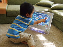 我が家にモニター用のイングリッシュタッチが来て数週間。息子の反応も上々「これ、みたいよ~」と言ってアピールするほどです やっぱり、こどもってタッチパネルに興味を示す!!生徒の皆さんにも、触ったり見たりしていただいているのですが、2歳前後のこどもでも積極的に触りに来るんですね。ビックリしました。クイズなど内容が高度になるといまいちわかっていない個所もありますが歌やストーリーにはかなり真剣に食いつきますもっと年齢が上(幼稚園とか・・・)になれば、理解度も増していてもっと面白いかもっていうのが親御さんたちのもっぱらの評判。今まで、こんな英語教材は出ていないので、関心度も高いですね。11月まで、どんどんお試しに来てくださいね~詳細はこちらから