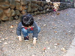 1カ月ほど前になりますが・・・レッスンで松ぼっくりやどんぐり、落ち葉を使うため、東急東横線多摩川駅からほど近くにある多摩川台公園に行ってきました。公園といっても、丘になって多摩川を見下ろせ、古墳もあったり、端まで歩くと次の田園調布駅のほうが近くなるほど広くて、木々も生い茂った自然いっぱいの森の中に幾つか遊具のある遊びがある・・・そんな感じの公園です。息子は今年の秋はどんぐり拾いの楽しさを知ったので、近所の公園だけでなく、もっとたくさん落ちている多摩川台公園まで足をのばしてみました。結構な勾配もあり、ちょっとしたハイキングコースもある公園なので、山に木の実拾いに来たかのような感覚に陥るほど。どんぐりだけでなく、松ぼっくりも見つけたり、落ち葉の色も「これは赤ね」「これは黄色」「これはグリーン」(うちの息子は『緑』の発音が難しいらしく、グリーンで覚えてしまいました)と、葉っぱの色もこの日でしっかり覚えたので、やっぱり、本物を触りながら、そしてコミュニケーションをする中で子供はたくさんのことを学ぶんだなと感じさせられました。途中、偶然、息子の仲のいいお友達とも遭遇したり、本当に本当に楽しい秋の1日となりました。おうちから3キロ程度なので、帰りは徒歩で帰りました途中で疲れた~ってなったら電車に乗ればいいか~って思って歩き始めたら・・・東京の名湧水57選に選ばれている用水路が東急多摩川線に沿うように流れ、我が家のある下丸子のあたりまで続いていて、そこには鯉や亀が住んでいるほどきれいなお水が流れていました。大好きなお魚さんや亀さんをみて歩くうちに鵜ノ木駅まで到着。ご褒美のソフトクリームで元気になって下丸子のおうちまでちゃんと歩いて帰りましたたくさん歩いたし、家に帰ったら即ぐっすり昼寝に入るほど疲れたようでしたが、親子&犬4人そろって楽しい1日になったね。自然は四季折々の顔を見せてくれるので、また、近いうちに行ってみたい公園&散歩道を発見できました。お近くにお住まいの方も是非、足を運んでみてくださいね!