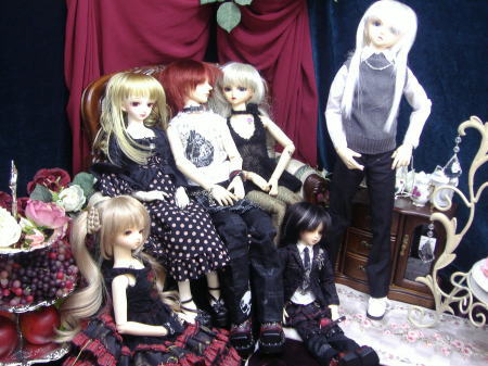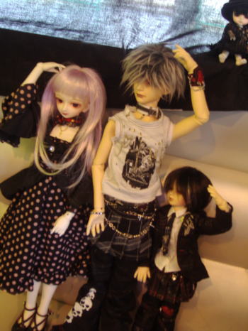 まったりレポの続きです~♪今回はメインディスプレイがバンドということでしたが・・・他にも小さい展示が2つばかりありましたのでご紹介です☆まずはアイドルブース♪その名もプッチダル(笑)気分は~「ダルダル~ダになんか負けない!だってこっちは3人もいるんだもん!」wどうやらマジカルピンクちゃんのライバルらしいですwこちらの衣装はStrawberryshineDollのちぃちゃんの作品です^ ^3人のモデルのうち、二人はうちの子たちなんですよ~♪ということで・・・まずはフィオーリの織歌(おりか)☆視線があさっての方にいっちゃってますがコレはコレw前回のアイドールでイベントデビューして二回連続の登場となりました☆ダルでは二回出てるのはこの子だけかも?そしてちぃちゃんちのコラルちゃんマイクがわりのチュッパチャップスを持っているところがかわゆすwそしてふたたび我が家からは金糸雀の冴(さえ)あの緑のデフォウィッグの印象がとても強いけれどウィッグを変えただけでかなり変わる!!このウィッグはちぃちゃんのだけど、すごく似合ってる気がします・・・ちょっと欲しいかもwダルってツンデレ好きにはたまらないですよね^ ^そして毎度おなじみ~?眼帯モデル&店番は月夜野家から~ロイくんとチェリーちゃんです^ ^この二人が着ている服は、一年以上前の・・・イベント参加二回目、7月のアイドールの時のです今回のイメージにはレザーの服の方が合うと思って再びの登場と相成りました^ ^さて、当日の話ですが楽天のお友達ではまずレモングラスさんとショコラ・ベルさんにお会いしました^ ^金髪姫カットと予告していたにもかかわらず・・・レモングラスさんは私だってわからなかったらしく;;ま、まぁ確かに金髪は別人だったと思いますが(苦笑)しかも当日はかなり濃い目にアイシャドウを入れた上にカラコンまでしてましたからねwいったい何者・・・(汗)そして今回のディスプレイを最も楽しみにしていたであろう・・・麗しき月の住人yue様yue様とのお話はまた別に腐なお写真と一緒にあらためて紹介しますね^ ^今回、思わぬサプライズもありました!!リンク先のお友達の美羽子さんがサプライズで遊びにきてくれました><かれこれ一年ぶりくらいにお会いするんですよ~~~~☆うろ覚えなのですが、多分、レモングラスさんかショコラ・ベルさんが来ているのを教えてくださったような・・・^ ^;美羽子さんとはイベント後に撮影会をしたのでまたそちらも楽しみにしていてくださいね^ ^それとそれと~更なるサプライズは~またまたリンク先のお友達の緋褪色さん!!緋褪色さんとは今年の五月に初めてお会いしてうちのSD二体をその日にステイに送り出すというある意味暴挙ともいえることをしてしまった方です(笑)最初、誰が目の前にいるのか認識できなかったよ(爆)しかも当日の私ときたら遅刻したものだから飲み物とかまったく買えなかったのねなので、差し入れの中にミルクティーがあった時は真剣に嬉しかったです(つД`)しかも素敵なスワロのネックレスをその場でプレゼントしていただいて緋褪色さん自身の手でつけていただくというなんともドキドキな体験までしてしまいましたwホント、短い時間をただ私なんかに会うために来てくれて本当にすごく嬉しかったです><美羽子さん、緋褪色さん、ありがとうございました(*´Д`)そして、また後で写真の紹介とかしますけどダルが大好きでいつも色んな子を連れてきて見せてくださるお客様前回のアイドールでテヤン用白衣をお買い上げいただいてさらにはSHOPのプレゼント企画でテヤン服を見事ゲットされたニモ様同じく前回のアイドールでお会いした7th cloverのもげ様それと蒼き薔薇の蒼さんと南さんに南さんにご紹介いただいてHONEY SLASH!さんともお近づきになりw少しでしたが*chocola*のチョコれさんともお話してなんだがしゃべることで忙しい一日だったぞ><他にもお話はできなかったんですがお顔を合わせてることができた常連のお客様とかマジ、楽しかったです自分、商品説明とか売買とかあんまり出来なかったけどやっぱりイベントって楽しいよあと、以前にもお買い上げくださった方なんですけどどこかのディーラーさんらしい方が今回、ハロウィンのお菓子をくださいまして自分、直接お話したわけではなく・・・なんとなく雰囲気とかは遠目に見て覚えてるんですが~どこの方だかわからないのが残念でした次の機会にはちゃんとディーラー名とか聞いておかないといかんなともかく人と接することってやっぱり楽しいし、人の笑顔は自分の力になるんだなさて、次はそのお客様たちが連れてきてくださったお子様たちの素敵写真をお披露目です~☆レポ3に続く♪
