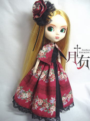 ご無沙汰してます^ ^;気がついたらドルショまでもう数日ですね明日には荷物の発送ですよ~っていうか、今回、荷物多すぎ・・・ホストクラブの時並の量だし・・・どうなることやらね~製作の方は頑張ってますよーええ、遅々として進まず・・・ですけどね明日には公式HPに画像がアップされると思うんですけど(販売予定画像は自分で更新してないので^ ^;)とりあえず数点のみ、こちらで紹介ですなんでこっちでかって言うと・・・もちろんワケありですw多分、ご本人は見たら「あ~っw」って思うのでしょうけどね(笑)ではまず1着目はこちら薔薇柄のドレスなんですけど、どこか和っぽい感じになりましたw本当はコレ、柄は縦に入ってるんですよ基本は縦に地の目とおして裁断するんですけどデザインの都合上、横に地の目を通しましたあまりヘッドアイテムにも柄が派手に出るとうるさい感じだったので私の得意ワザ(?)共布で作った薔薇の髪飾りにしました花びら一枚一枚作って、手縫いでまとめるこの薔薇の花面倒ですけど、けっこう好きなんですよね市販の造花では色味があわない時には使えますこちらも同じく薔薇柄のドレス滅多に使わない色味なのであわせるレースやリボンが手元にないし^ ^;やっぱりヘッドアイテムはうるさくならないように共布のミニハットにしました今までのミニハットで一番綺麗に縫えたかも(笑)最近、ちゃんとかぶれるタイプの帽子を作るようになったからミニサイズもリアルになるように裏地をつけてサイズテープ(ブリムとクラウンがあわせているところの内側についているテープです)もきちんと縫い付けましたよさてさて、今回のこのドレスの生地なんですけどね実はリンク先のお友達のうさぎさんに以前に頂いたものなんです^ ^自分で買いにいったら買ってないタイプの生地かも?あまり赤や茶色系の服を作ってないからかもですけどね私がこの生地を使うとこんな感じに仕上がりますwうさぎさん、ありがとうございました~^ ^まだまだ頂いた生地は活用しますよ!ではそんな感じで~ドルショまで最後の追い込み頑張ります
