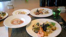今日はBRIDGE(ブリッジ)でブッフェランチじゃけぇ!いっぱいとっちゃいました~ ブイヤベース・サラダパイ包み・ニョッキ・キッシュズワイガニチキンシーフードのトマトクリームパスタいっぱい食べた~野菜たっぷり~バーニャカウダーみたい~ピラフ・パン☆デザートケーキ盛り合わせ・ゼリーソフトクリーム 珈琲タルト・ロールケーキ・杏仁豆腐~おいしかった~お菓子のツリー<戻るディナーじゃん! ランチじゃけぇ!