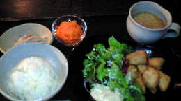 今日はspile (スパイル)でカフェじゃけぇ!大山鶏の胡麻みそ唐揚げからあげサラダ・人参・スープ・ごはん★デザートタルトかわいい珈琲にあいますさっくりいただきました~おいしかったです 広島ブログ じゃけぇ!ディナーじゃん! ランチじゃけぇ!