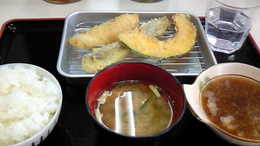 今日はあつあつ揚立てっちゃん天ぷらでランチじゃけぇ!天ぷら定食レンコン・かぼちゃ・魚など6品鶏肉・・・ご飯・味噌汁天つゆにつけて、いただきました~おいしかったです 広島ブログ じゃけぇ!ディナーじゃん! ランチじゃけぇ!