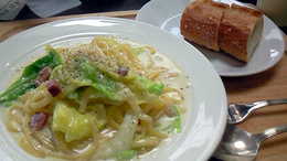今日は ブーランジェリーリアン (Boulangerie Lien)でランチじゃけぇ!キャベツとハムのクリームパスタクリーミィーバケットキャベツはしゃきしゃきですおいしかったです 広島ブログ じゃけぇ!ディナーじゃん! ランチじゃけぇ!