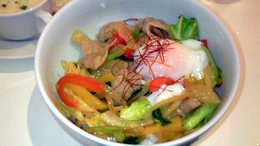 今日はcafe moni. 本町店(カフェ モニ)でカフェじゃけぇ!セットメニューサラダ・スープ・パン日替わり丼プルコギ丼たまごがとろ~り☆ドリンクカフェラテハートが可愛い~今日のお食事おいしかったです 広島ブログ じゃけぇ!ディナーじゃん! ランチじゃけぇ!