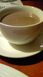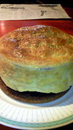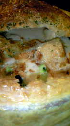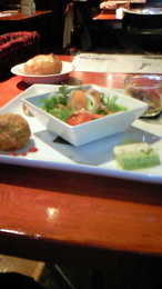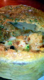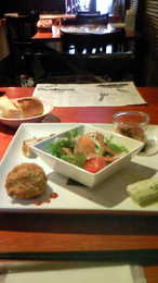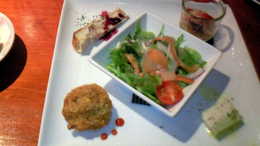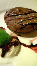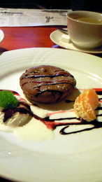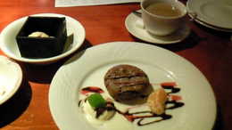 ランチコース ☆全盛盛り合わせ本日の盛り合わせ肉パイ包み・サラダ・マリネコロッケ・野菜テリーヌパン☆メイン鶏肉のクリーム煮込みパイ包みパイに覆われたクリーム煮込みさくさくパイを割ると・・・トロ~リお野菜と一緒に・・・パイがあいます~アツアツで、おいしかったです~☆デザートチョコレートケーキアツアツフォンダンショコラとろ~り、チョコレートカフェオレ☆おまけラムレーズンアイス本日、ストライプのシャツということで、頂きました~本日のランチおいしかったです