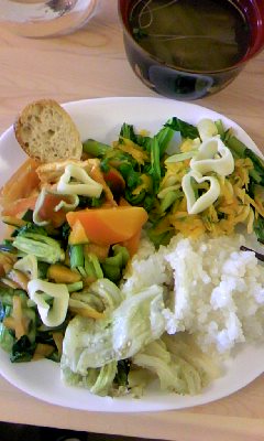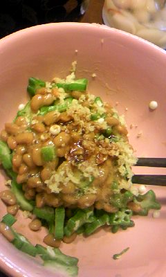 nikoの小学校生活。 たたく、いじわる、ひっかく、 終結をみるまえに、 次の問題が。。。。 腰を据えて取り組みます。 頭痛いですが貴重な体験でもある。 発達心理学を、ちゃんと学べということかもしれないし。 自分の成育歴での、周りとの軋轢を解く機会かもしれない。 この機会に学校に配属になっているスクールカウンセラーとも お話させてもらおうかなあ。 明日は運動会。 明日延期になると火曜開催。そうなると出席できないので なにがなんでも明日!晴れてくれ~~~~~昼に食べた納豆。おくら、しょうが、梅干ししょうゆ(たたき梅で出た梅干しの種をしょうゆにつけた) 。そのあとで読んだ雑誌に載っていた「モデルの食生活」(笑)にも納豆と梅は吸収上良い組み合わせと書いてありました。夕飯。キムチ豆腐・三つ葉のせほうれんそうとベーコンのサラダ以上I氏作。私はペンネアラビアータもどきを作りました。。。。バゲット添え。神戸屋のバゲットは100円くらいの割においしい気がする。原材料にもあまり変なものが入ってなさそう。