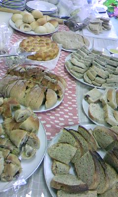 今日はこぶたカフェで亜莉パンコンテスト。目もくらむような光景です。思わず歓声をあげました。手作りならでは、これでもか!とぎっしり具をいれたりはちみつパンにゴルゴンゾーラ♪なんて組み合わせに凝ったり。ぽよ作のミネストローネと亜莉さんの豆乳パンナコッタがついて、500円!ありえないランチ。私はこの上、ピタパンサンド(あくしち作・手作りベーコン入り)を2回おかわり。スープを1回おかわり。超おなかいっぱい!おいしかった~~~投票にはすんごい迷いました。優勝したララ猫さんの南仏ハーブのパンは、あとをひくうまさ。なんと楽健寺酵母でこんなおしゃれなものが。。。オリーブオイルと塩で食べるひじき食パンは、ひじきもオリーブオイルで炒めたそうな。しょうがの甘煮が入ったパンが、これまた不思議なおいしさで。きよっぴおかあの、ゴーヤー&ツナの甘辛いためが入った沖縄惣菜パンもじんわりおいしい。ライチ賞は甘納豆入りの和菓子パンを持ってきてくれたきよぽんさんに決定!賞品は料理部ご招待。来てね!きよぽんさんはお迎えの関係で滞在時間30分くらい?すごい。。。そしてやっぱり楽健寺酵母、私も大好きああ、パン講座ってすごいですね。確実に良いものを伝える仕事な気がしました。次回の亜莉パン講座は具で遊ぶ!手軽なのにごちそう!なお食事マフィンですよ~~~無限に広がるレパートリー!当日のメニューは企画塾の会議で、亜莉えもんの四次元ポケットから厳選したこの組み合わせになりました!!お食事マフィン・サブジ(インドのスパイス炒め惣菜)・ツナ&青ネギ・玉ねぎ&キャラウェイ・びっくり!ゴルゴンゾーラの塊ゴロリおやつマフィン・ココア生地にバナナの塊ゴロリ・バニラシュガーでシンプルに副菜は、炊飯器で!お野菜の味が生きるラタトゥユスパイスピクルスジンジャーシナモンティーhttp://kobutalabo1.blog9.fc2.com/blog-entry-164.html↑こちらに詳細あります。あ~楽しみ!!!・・・・・・・・・・・・・・・・I氏&nikoのカレーは最終的にカレーにゅうめんになりました。かつおだしと、ルーのカレーってほんと相性抜群!!まいたけを足して、うま味を出しました。そしてますみちゃんにもらった行者にんにくをみじんぎりにしてみりんと味噌であえたら、おいしい味噌だれができました。きゅうりとともに。サラダは焼きナスと新玉ねぎとトマト。昼夜ともに食べ過ぎで、ぽよちゃんより妊婦っぽい腹になりました。。。。今週末は雨なのかな?運動会、なんとか日曜にやれますように。最近nikoの友人トラブルが頭が痛い。たたいたり、ひっかいたり、、、、、「言葉で表現できないから、手がでちゃうのかな。 言葉で気持ちを話す練習しようか」と提案してみると、それまでしれっとしてたのがこくんとうなづきました。愛を伝えながらも叱るという、難易度の高いところに突入したな~。私も小学生のころ、よく言いたいことがうまく言えなくて途中で怒って泣き出したりしたことややめて、って言ってもきいてくれないお友達の手をえんぴつで刺したことなどを思い出しました。外にうまく出せない怒り、わかってもらえない気持ち、自分の感情をもてあましていた時期はずいぶん長かったような。その後「どうせわかってもらえないから、言わない」と決めたあとは家で無口になった思春期。nikoの長い成長期に、向き合う元気を、仕事で養わねばね☆ますます心理学が面白い。
