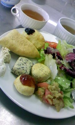 今日は亜莉さんのスコーン講座でした。この美しいプレート。眼ですでに満足度99%。食べて200%。笑準備中に「今日の目標は?」と亜莉さんに聞くと「みんなに美味しいスコーンを食べてもらうこと!」と返ってきました。(注・ランチ会ではなく作る講座です。笑。)やはり意図を明確にして事に当たる、というのはほんとに大事。何か突発事故があっても、今日自分が得たいこと、究極の目的が絞れていると対応が素早くできます。いや、今日は(?)突発事故はほぼなかったですけどね^^そして意図を明確にしておくと、ほんとーーーーに達成感があります。今日のスコーンはほんとーーーーに美味しかったもの!気持ちよく、棒高跳びを飛んで美しく着地した気分じゃないですか?>亜莉さん。ベジもあっさりながら滋味があり、リッチはコクがありながらも絶妙な油分と甘み。そこへこってりとクロテッドクリーム、豆乳クリーム、ペッパー入りクリームチーズ、焼きナスなすとトマトのサラダ、グリーンサラダ、スモークサーモン、いちごジャム、ブルーベリージャムを好きな組み合わせで乗せてたべるの!!!サラダのドレッシングもみんな必死でメモってましたね。亜莉さんのドレッシングは旨いのです。そしてスープも、具が潔く玉ねぎだけ、そこがイイ!!そしてそして、スコーン自体が、「こんなおいしいスコーン食べたことない!」「ほんとにもそもそもボロボロもしない!なにこれ~~~」「売れる!」「これ売ってたら超人気店だ!」と見事にみなさんのスコーン観を塗り替えたようでした。ああ、おいしかった。・・・・・・・終了後、アシスタントの綾小路さんと亜莉さんとお茶しながら振り返りをやって、なぜか亜莉さんの本に書くサインを考え始め。。。笑「でもやっぱりさ~、ひとことも欲しいよね」「なんだ?美乳は世界を救う?」「心も体も、楽にキレイに?」「やっぱ、おいしく、楽しく、美しく、か?」こぶたラボのモットーと亜莉さんのモットーは同じだから一緒にやっていけるのねえ。・・・・・・・・・・今週のこぶたカフェ、亜莉パンコンテスト!ですよ~~~条件はパン生地が卵乳製品不使用の亜莉パンをもとにしていること。 混ぜもののほうには、卵・乳製品・肉など使用可です。 ☆出品者 給食費 300円 原材料明記のこと、 30人くらいで試食できる量(30人前でなく30切れね^^) ☆試食者 給食費 500円 アレルギーの方、自己責任で試食お願いします! (スープ・デザートつきでこの日の給食となります♪) こぶた給食お申し込み・お問い合わせ http://form1.fc2.com/form/?id=285625 すっかり人数把握を怠っておりました。 出品者も 試食&投票者も、 こちらにみなさんアクセスを~~~~ なんか亜莉さんがデザートつくってきてくれるって!!! この日のカフェは、午後別室でキャロルさんがアロマ施術をやってくださいます!●カウンセリング・オリジナルアロマボトルを作成・ハンドかフフットを施術します。 残ったアロマオイルはお持ち帰り頂けます 13:00~16:00 @視聴覚室 料金 2000円(20分) 続けて数枠ご予約頂くと、部分トリートメントだけでなく、デコルテ・背部・上半身・下半身・全身・・・とできますので、お問い合わせくださいね。●ふた枠で<レインドロップ>も可能です。 10種類のアロマを脊椎に沿って垂らし、日常の疲れや老廃物が溜まりやすい背中を浄化します。 特に背骨周辺の筋肉をほぐして温め、背骨の歪みや縮みを整えます。 こころや身体に現われている症状を緩和するヒーリングトリートメント。 ご予約・お問い合わせは、下記フォーマットでお願いします。 http://form1.fc2.com/form/?id=420363 ・・・午後からあさこちゃんもアロマクラフトで出店です。なんだかアロマづいている??「インフルエンザへの対策に!手洗いうがいにアロマでプラス! ~抗ウィルス&殺菌効果の高い精油を使ったスプレーづくり~」 ●ルームスプレーで除菌殺菌 ●外出時のトイレ便座消毒 ●外食時の手の消毒に ●お掃除のぞうきんがけ ●お家のトイレのにおい消し ●ガラスクリーナーとして ●キッチンのシンクやガス台まわりの汚れ落とし ●お風呂のカビ防止 ●濡れタオルにシュシュッとして持ち歩けばお子様の手をふくのにこちらは予約なしで先着順です~・・・・・・・・・・先日のロータスエイトさんでのヒーリングフェスタにて40分のプレシャスリスニングを受けてくださった方がブログに感想を載せてくださいました~~~http://plaza.rakuten.co.jp/keimana/diary/200905250000/ありがとうございます!!「スキップしたくなる」ってすごくうれしいお言葉です。みんながスキップしたい気分でいたら、街も家も会社も、相当楽しそうだ。【kei*mana】さんは、母たちのハッピーのためにいろんな企画をしています。こぶたラボを立ち上げたとき、すばらしいお手本amigoというのがあって、それを地元に作りたい、と思って動き始めました。その後、各駅ごとにこぶたラボ、があればいいのに、と思い始めたころ、あちこちで同士の活動が台頭してきたのでした。まるで私