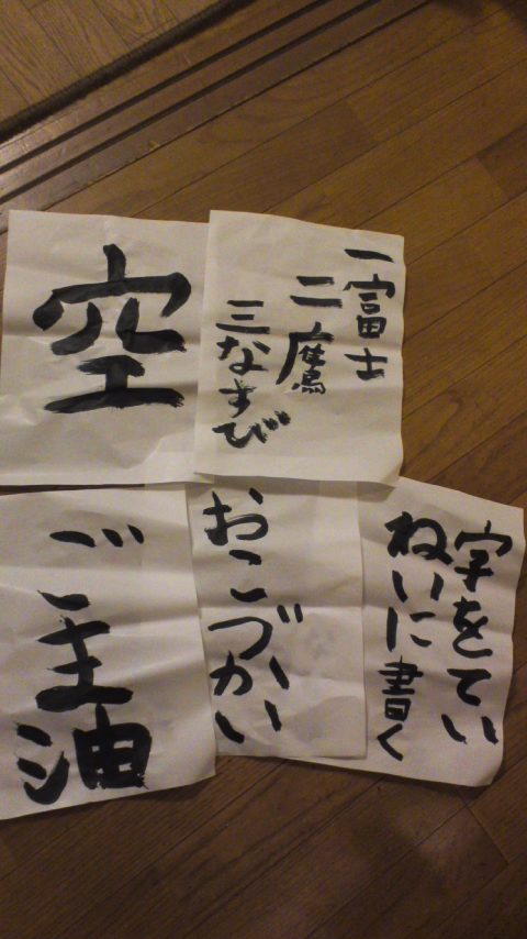 ずる休みというのかなんだか今日は学校に行けない。そんな日がnikoには時々ある。2年生になってからはだいぶ朝のうちにリカバリーできてるけど昨日は、励ましにも気分転換にも乗ってこず。数日前から「なんかこころが落ち着かない」と言っていて、聴いてもうまく聴けてないようで内容はクリアにならなかった。 インフルエンザも流行り始めたし体調もいまいちなのかなあ?と留守番させることに。ただし、「なんか気が乗らないから休んでTV観てよう」なんてなるとイヤなので「じゃあ、TVのリモコン持って行くけど、それでもいい?」と訊くといいという。国語と算数のドリルに付箋を貼って、終わったものははずして置いておくように課題を出し、お昼はおにぎりとぬか漬けと昨日の夕飯の残りにラップをかけてあっためて食べるように言い残して出勤。あえて卵焼きとか好きなものを用意せず。 私の中で葛藤がある。行ってしまえば楽しいこともあるのだから無理にでも行かせるのがいいのか。仕事もこんな調子で続かない人になったらどうしようとも思う。反面、「とにかく何がなんでも行かなくちゃ」という思考停止が過労になって倒れるまで働いてしまうメンタリティを育てるのでは、とも思うのだ。選べる、その上で頑張ろうと自分の意思で思って行動できるように。学校に行かないかわりに家ですること、を提示してみた。 帰宅すると禁じているガスストーブを使った跡があり脱力。「留守番に関しての約束を守れない人は、休む選択肢はないから!!」(エアコン、ホットカーペットは使用可です)そしてTVのリモコンを求めて、私の引き出しなどを捜した形跡も発見(笑)。 子どもってしぶといんだよなあ。。。 夜、帰宅したI氏はI氏の叱り方をしていた。「お前な、じゃあおとんが『今日は疲れたから休む』ってしていいのか?ご飯食べれなくなるぞ、いいんだな?」「よくない~(泣)」「おとんは休みたくても休まずに行くんだ、頑張って。それが仕事だ。nikoは学校が仕事なんだから休みたくても頑張って行くんだ、同じだ。nikoはいろんな才能があっていろんなこともできる。いつもすごいって思ってるんだ、(以下褒め言葉が続く)」最後、誉めて励ますところが素晴らしい。叱って、誉めて、抱きしめるような3段階がI氏の対応。 私は叱ろうとすると最後は怒りだして罵倒しかねない。。。。(汗そしてそんな時はは抱きしめるどころかしばらく近寄らせない、喋らない。。。。 シングルから夫婦で子育てするようになって、精神的に一番助かっているのは叱り役を引き受けてもらえることかもしれない。あ、誉め役もか。。。私は、、、、迷う役(笑)。 父が理想を語り、母は情緒を理解する、、、ことができると子どもの中に男性性と女性性が共存できるのかな。子育て、大変だけど、面白い。nikoの書き初め(笑)。