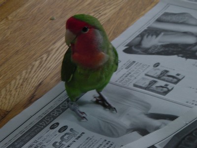 今日は爽やかな秋晴れですねと暢気な事は言ってはいられず朝から洗濯に追われているハルです アヤノスケのハウスの前ではラブが目を光らせております ラブ:「お兄ちゃんあそぼ」アヤノスケ:「・・・」 この後ラブは散々焦らされてアヤノスケは猛ダッシュそれを追うラブドタドタドタ(ものすごい音です)アヤノスケは超速ジャンプで棚の上へ アヤノスケ:「ヘン 俺にはまだ野生の 血が煮え滾っているんだ」得意そうなアヤノスケの顔自分が遊びたい時はラブにしつこいのに・・・ラブはいつもアヤノスケに振り回されています 休みの日はいろいろ忙しいですタバサとサラの放鳥時間でも有るのでおせんべいタイムにする事にしました タバサ達にもおせんべいをおすそ分けですタバサ:「せんべいだ」サラ:「うんうん」と言うやいなやおせんべいにかぶりつくサラサラの食べっぷりを見て ひいているタバササラ:「ガバァ ガバァ こりゃうまい」タバサ「後でゆっくり食うか・・・」サラ:「おいしかったぁ~」サラが幸せ気分に浸っているすきにタバサはおせんべいに直行タバサ:「せ せんべいが無い」 可哀相におせんべいは全部サラに食べられてしまいました 勿論この後サラには内緒でタバサにおせんべいをあげましたそれにしてもタバサの羽はとても綺麗なんですハルの腕ではそれをお見せで出来ないのが残念です下の方に黒い羽が生えてきました翼をひろげたところを撮りたいのですが・・・もっともっとカメラの腕を上げたいです