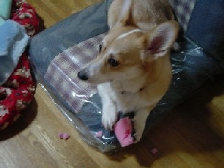 今日は涼しいと言うより寒いくらいです住人達は昼寝タイムその中ラブだけ座椅子で何やら熱中しておりますちと おかしいぞ「ラブちゃん何しているの?」と声をかけるとラブ:「見つかっちゃった・・・」ハル;「アラーッ 何を持ってるのかな?」ラブはスポンジを抱えて固まってます何処から持って来たのでしょうスポンジを取ってもまだ固まってます ラブはいたずらを発見された時のハルの「アラーッ」に弱いんですラブの未完成作品です・・・ラブが座椅子の上で大人しくしている時は要注意なのです 部屋の掃除も終わり今年は寒くなるのが早そうなのでゆきおとターナの暖房を設置する事にしましたところなんとターナのハウスにラブのおもちゃが・・・またしても・・・ラブ:「・・・」 これは「いたずら」なのか?それとも「お片づけ」なのか?(おもちゃ箱がゆきお達のラックの上に有るので・・・) 今日は雨でお散歩にも行けないので良い方に解釈する事に致しました とりあえずゆきお達の暖房は赤外線ライトを設置しました(冬って感じですね)去年は暖房が遅れゆきお達は半冬眠状態に成ってしまいました今年はホカホカです