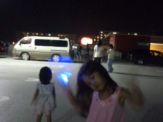 姉妹は、たっぷりお昼寝して元気いっぱいだったので、花火大会を見に行って来ました。