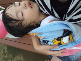 海風が気持ち良かったので、寝ている次女を抱っこしてベンチで黄昏ていました(笑)