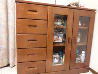 取っ手の凹みをパテ埋めして、白く塗り替えして、アンティーク調の取っ手を付ければ可愛くなりそうでしょ?