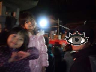 近所の神社で豆まきならぬ菓子まき。町内会の巳年の人達が福をまいてくれるんです。