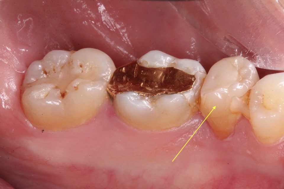 神経を取っているのでクラックは入りやすい。いずれ補強冠が必要になるだろう。