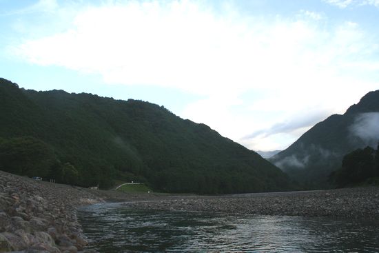 夏が帰ってきたような暑さ。この日、地元は楽に35度を越えて猛暑日でした。いつもの川に直行といいたいところですが、ピンポイント予報では、お昼過ぎから一時雨になりそう。でも、もちろん行きました。^^出発は9:20→いつもどおり1時間で着きました。少し増水しておりましたが全く問題ないレベル。コケがついている石が多くて滑りやすい環境でした。▼いつもと同じような写真にならないように選びました。^^●清流「板取川」は、それでも美しい!●今回のベストショットです。^^ 題名「網は持っても魚はとれず!」^^;いつもと同じ場所の写真ですが、少しでも涼しくなって頂ければ嬉しいです。(^^ゞ結局、ピンポイント予想通り雨が降り出しそうな雲が近づいてきたので撤収。車で着替えていたら雨が降ってきました。帰宅したのは16:30頃。地元は降っていないので夕食後、まー坊は地元の盆踊りに。アヤヤは、マッタリと自宅で過ごしました。^^
