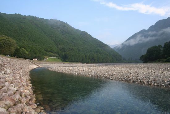 夏休みが終わって1週間が経つのに・・・タイトルがおかしい。^^;ですが記録ですので3日目書きます。^^●最終日になって、やっと青空が拝めました。^^●噂どおり素敵なキャンプ場でした。●テントを乾かしながら撤収準備。子供達は川遊び。 センターハウスの前で記念写真。お世話になりました。●昨年に引き続きやっていきました「一枚岩」 もちろん荷物を持って虎ロープでゆっくりとおりていきます。^^;●前日も雨が降ったのですが透明度はこんな感じです。 これで川底まで2mぐらいです。●アヤヤは、ライジャケ+浮き輪でスイスイ。 でも浮き輪って必要なの?^^;●まー坊は自然の滑り台がお気に入りのようです。^^●川の中はこんな感じ。まだ濁っていますね。●今年もありがとう!魚飛渓!●帰りは道の駅「まんぼう」でお土産を買って帰りました。●天気予報最悪で雨を覚悟していった始めての2泊3日のキャンプでしたが、 テルテル坊主の効果があったのかな?^^;●最後になりましたが先日の台風でこのキャンプ場も凄い事に・・・。 ですがHPでは大きな被害はなかったと書かれていたので一安心です。
