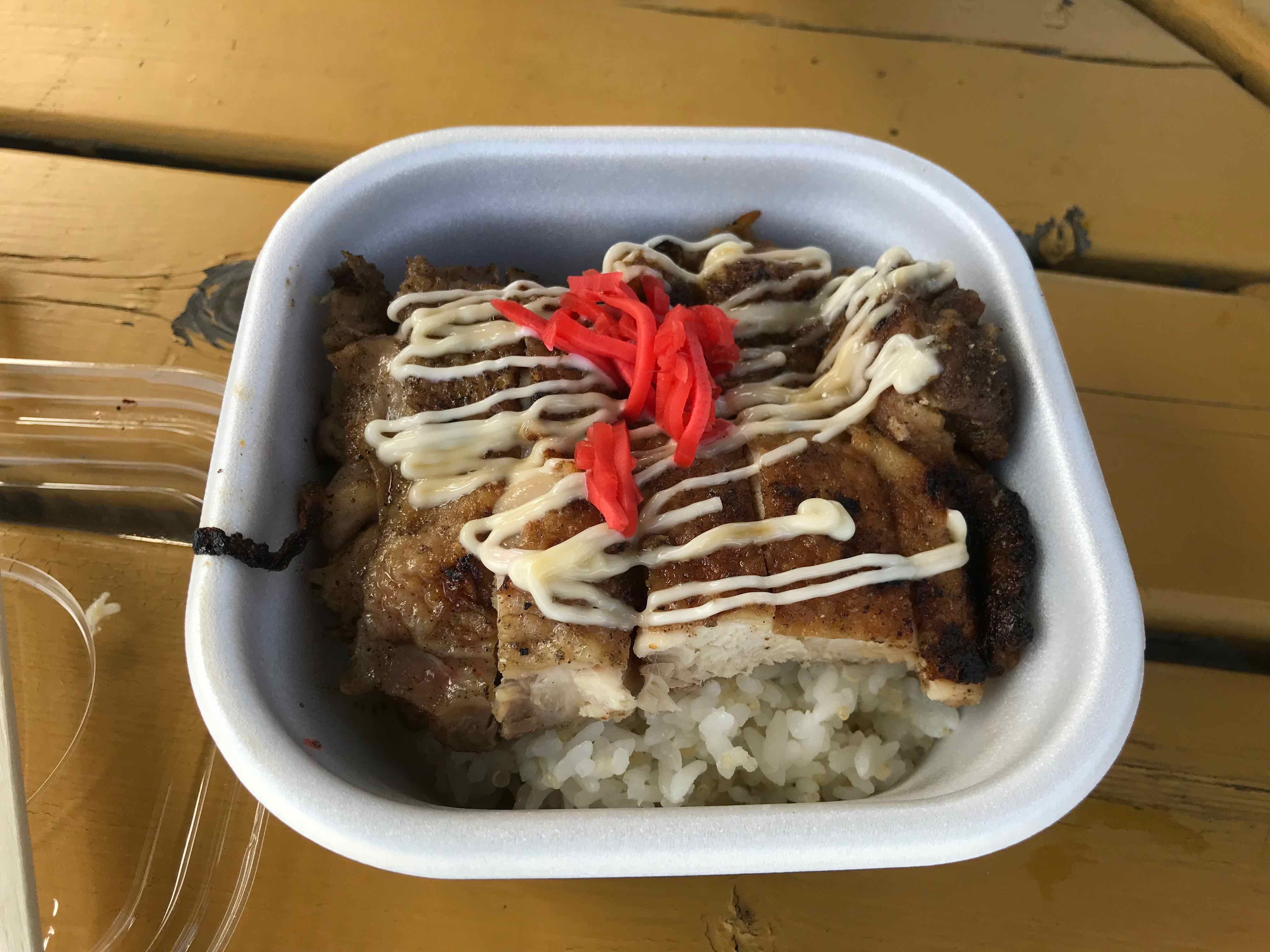 ゴール地点では、剣淵町産のスーパーフード・キヌア入りご飯の 鶏もも丼