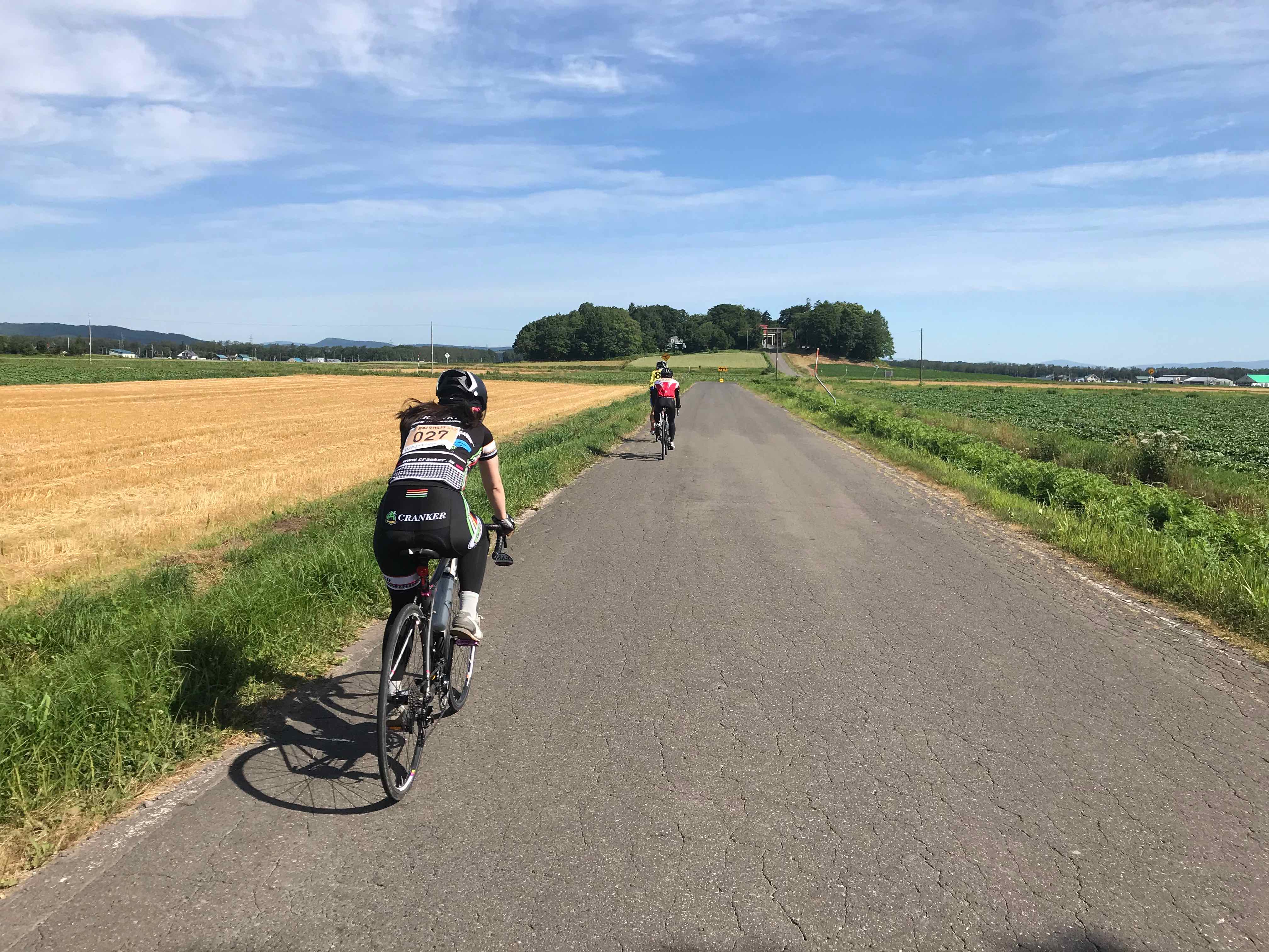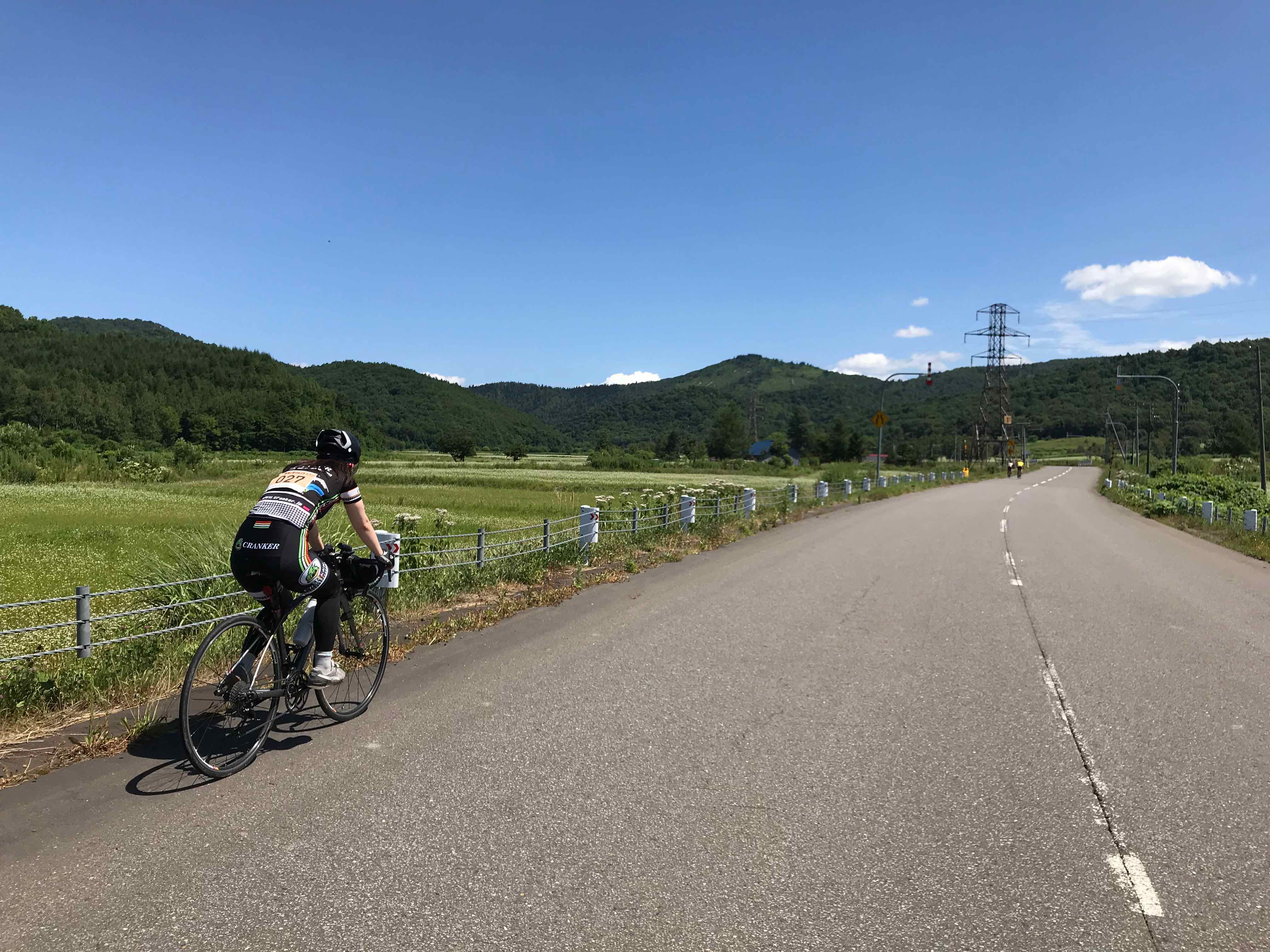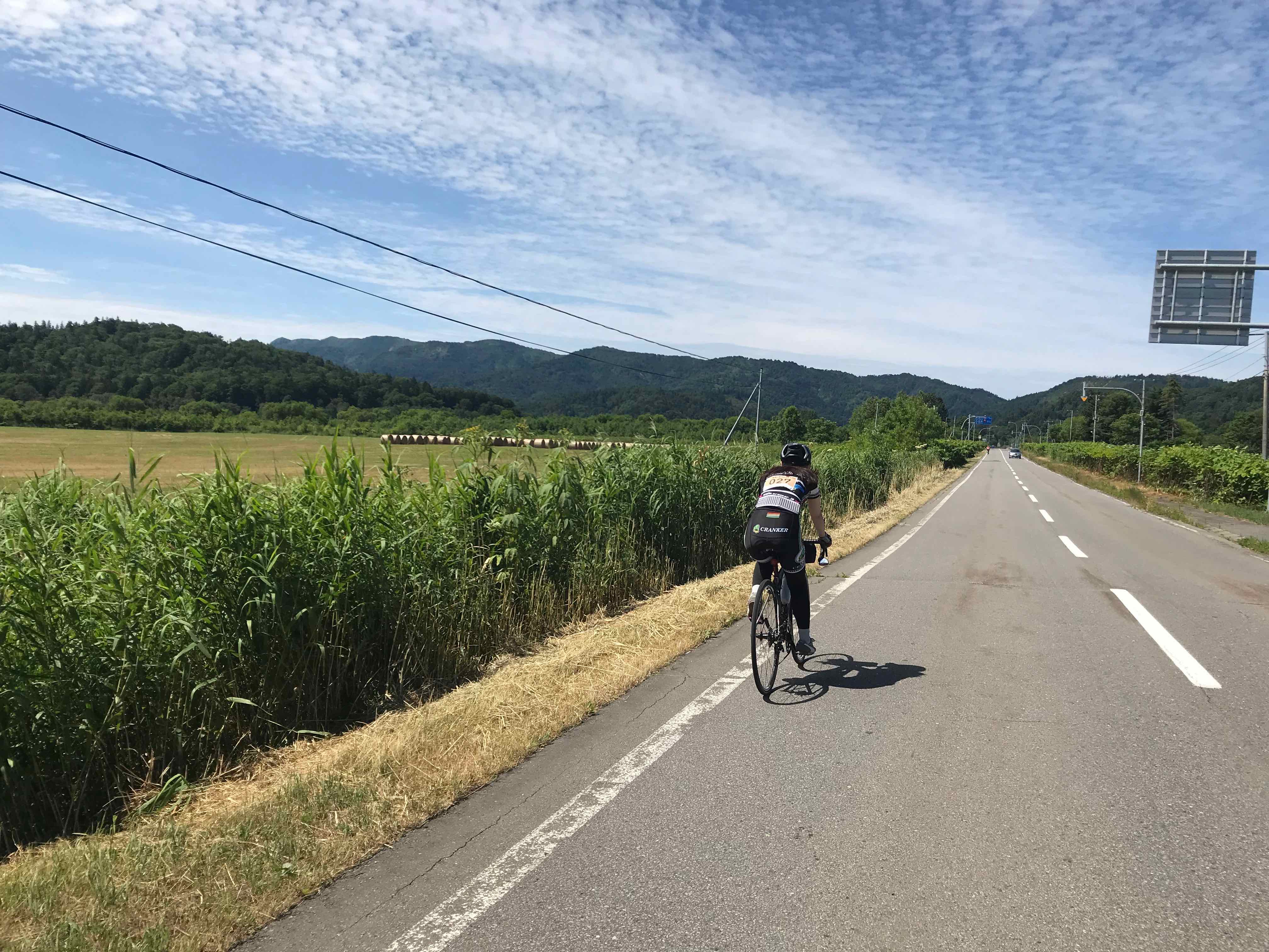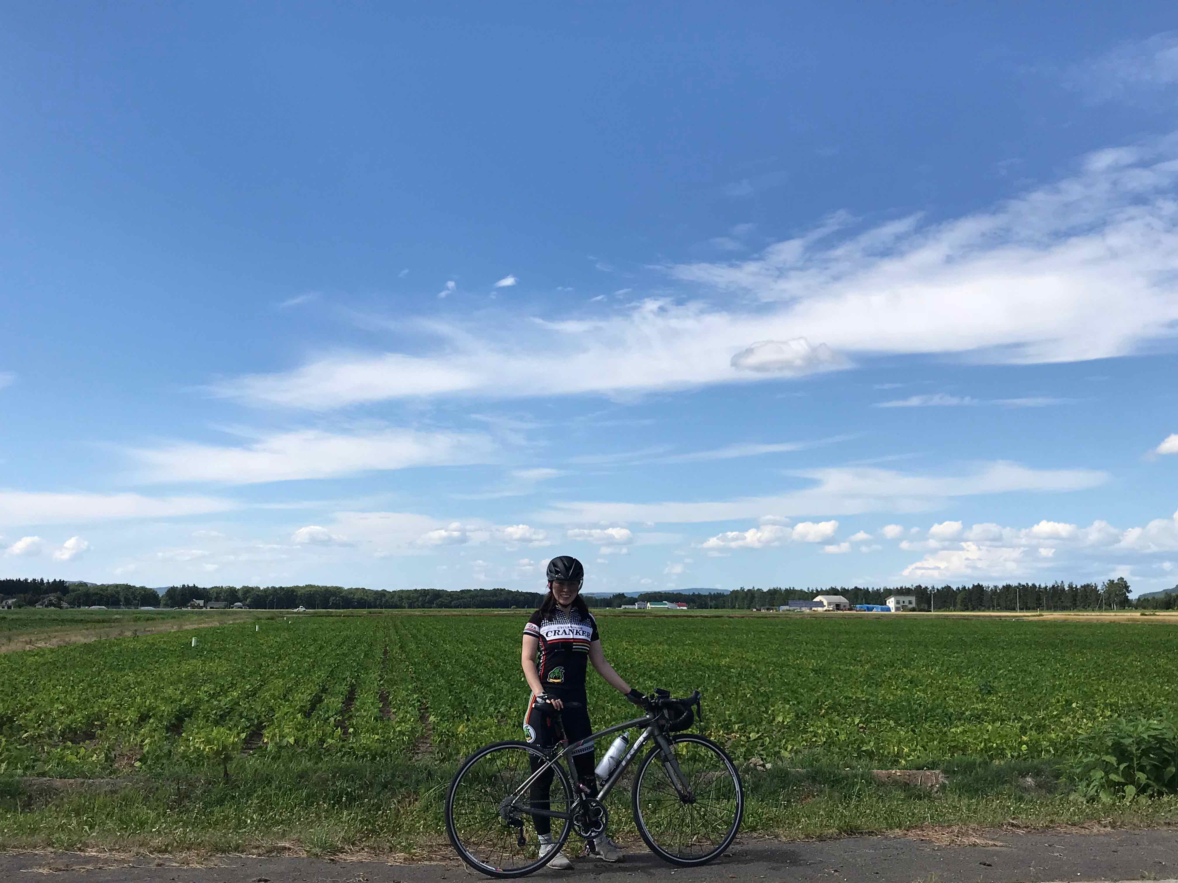 まずは剣淵町内の畑の中を走ります。空が広くて、畑とのコントラストが素晴らしい!この日は晴天、気温も高すぎず、絶好のサイクリング日和でした