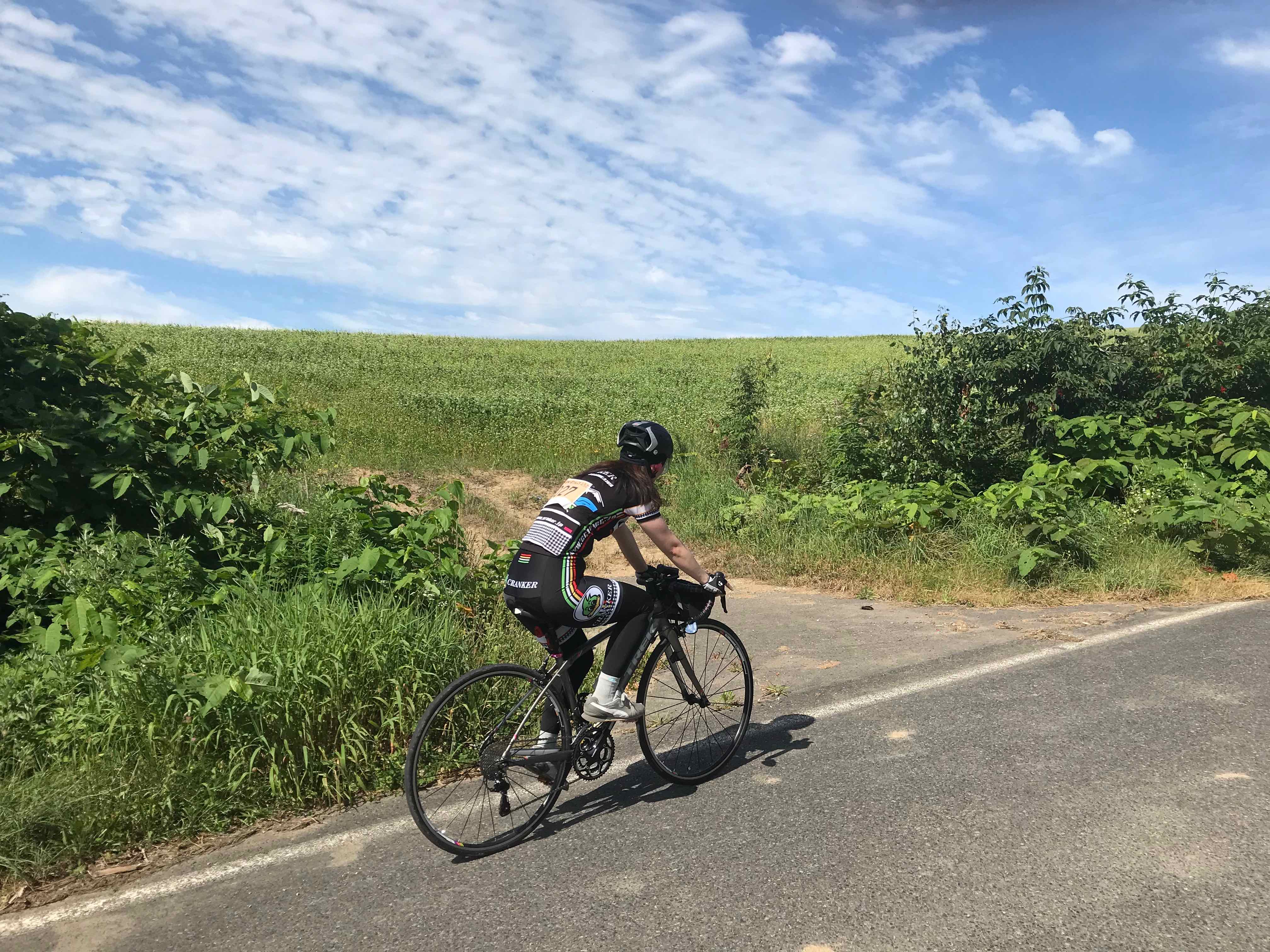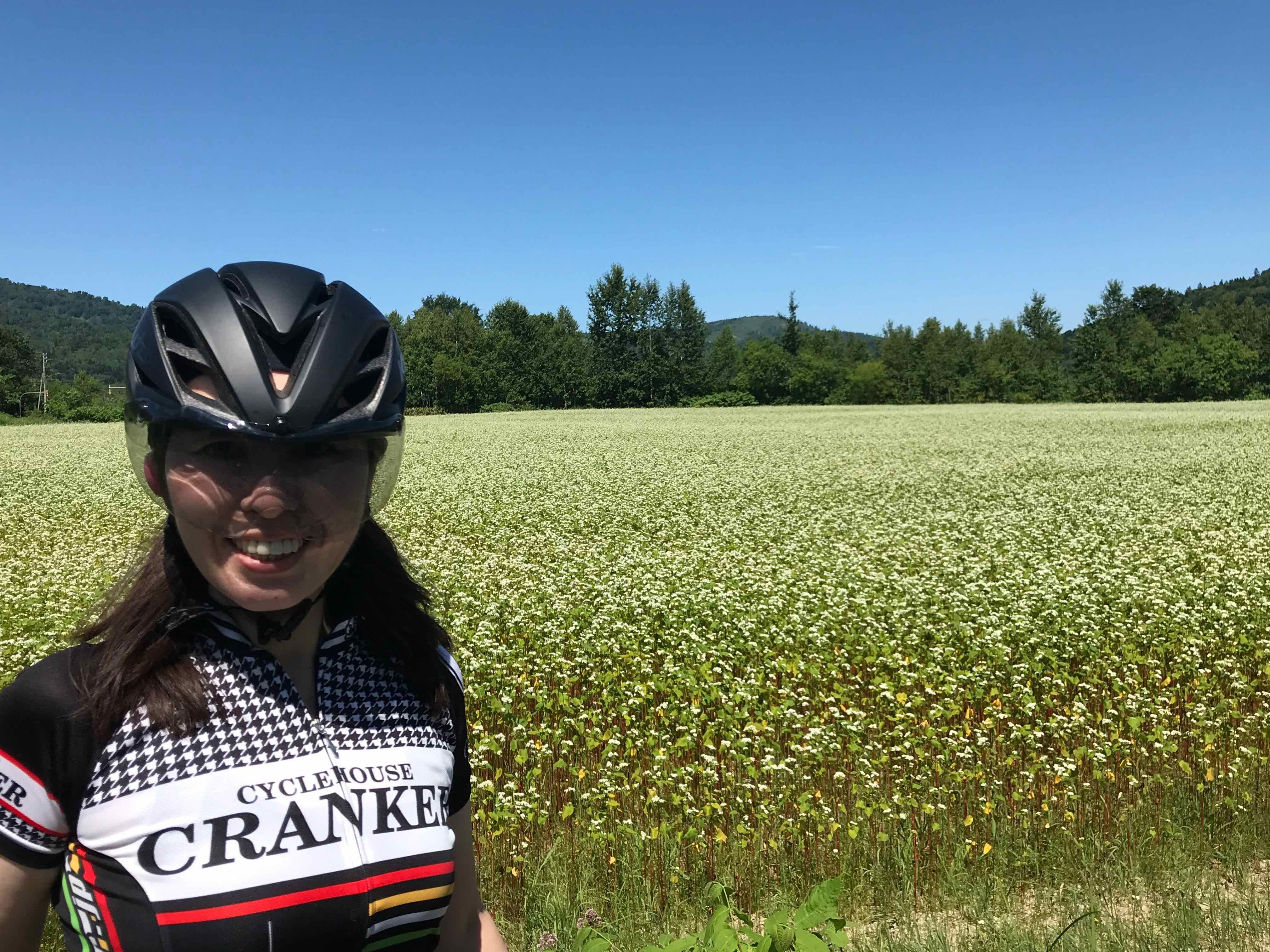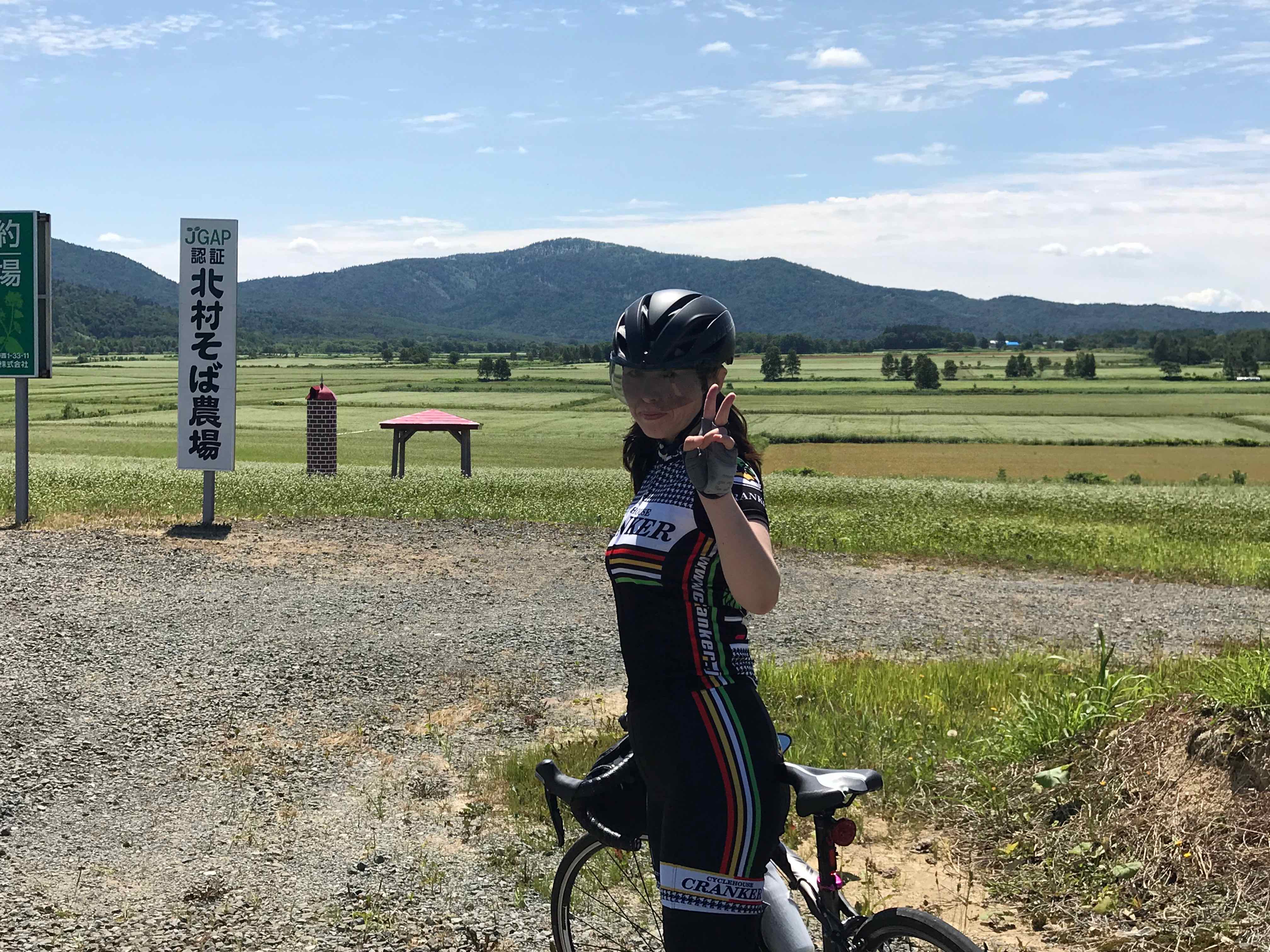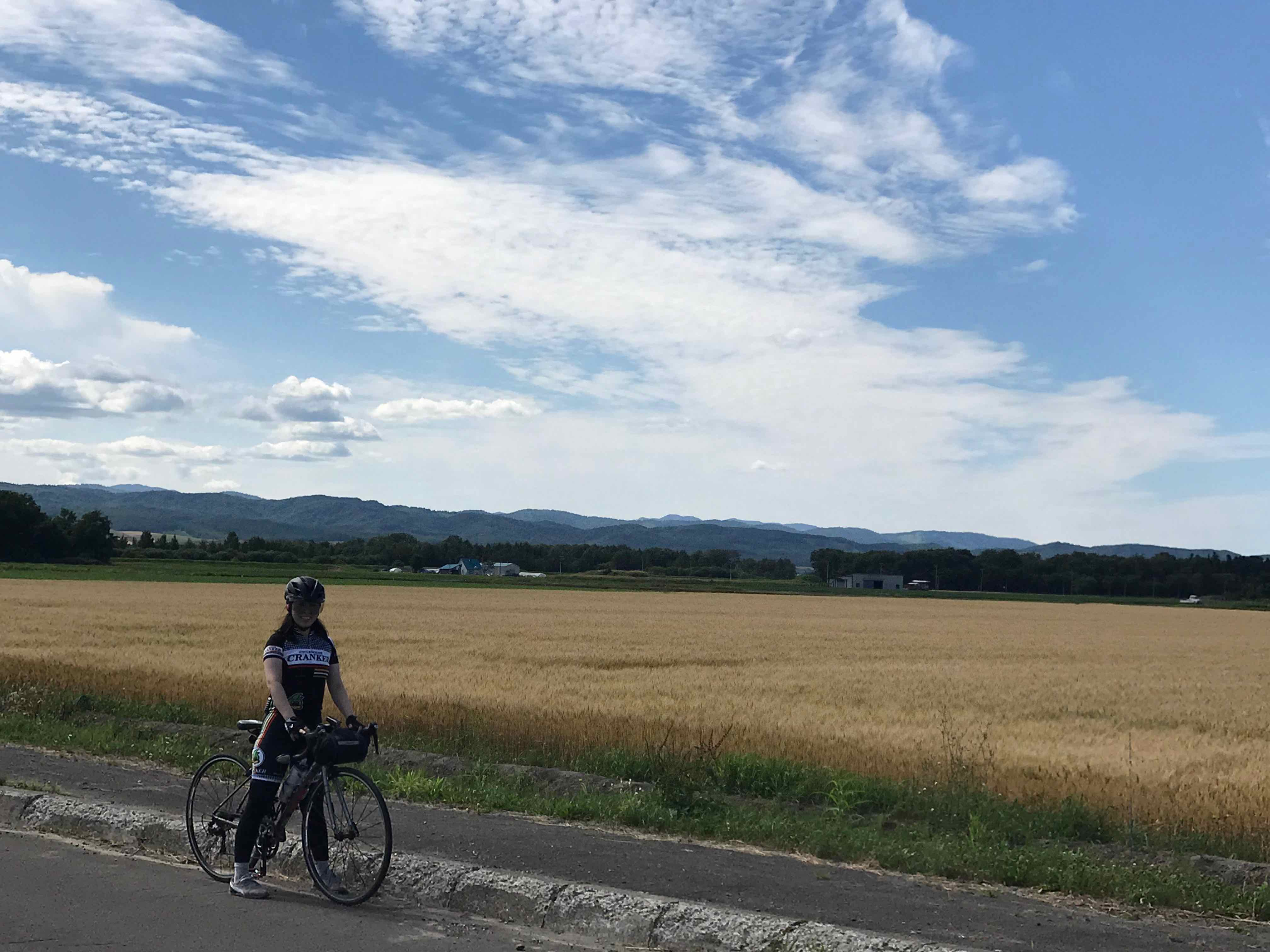 まずは剣淵町内の畑の中を走ります。空が広くて、畑とのコントラストが素晴らしい!この日は晴天、気温も高すぎず、絶好のサイクリング日和でした