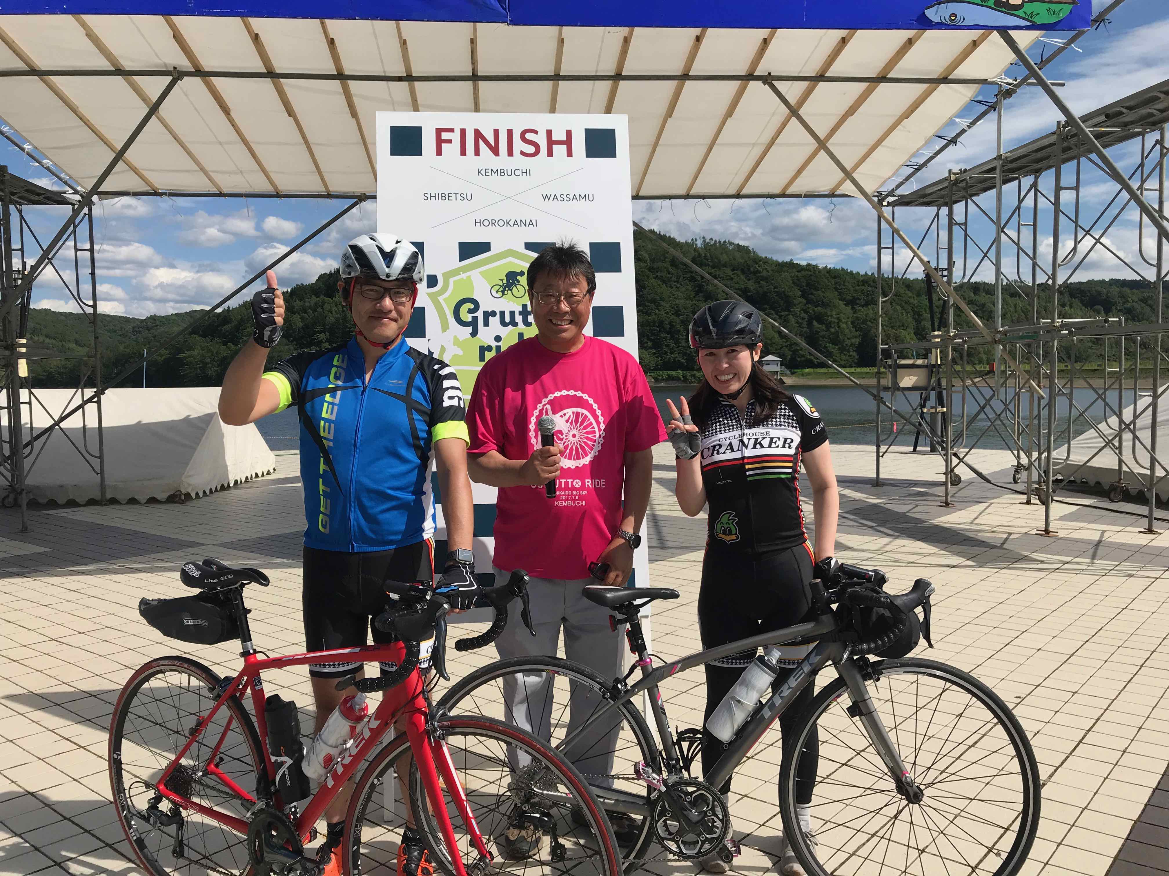なんと、ゴールでは剣淵町の早坂町長がマイクを持って出迎えてくださいました!びっくり!早坂町長と記念撮影。ありがとうございました。