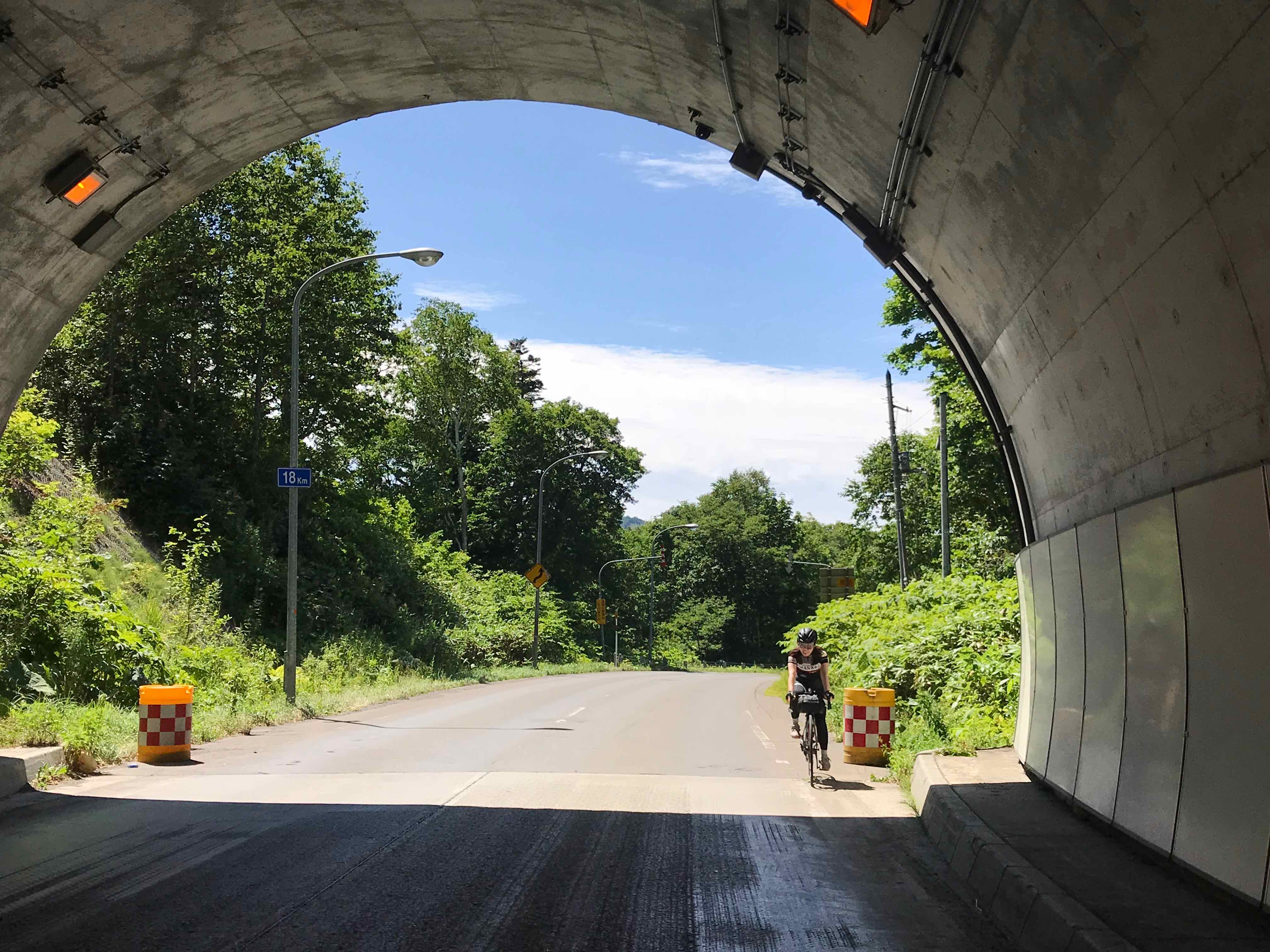 なんとか和寒峠制覇!峠の頂きにトンネルがあります。この日はお天気が良かったので、トンネル内はひんやりしていて、いいクールダウンになりました