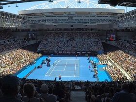 今月は世界最大級の大会、全豪オープンの視察に行ってきました。全豪オープンの主催および運営は、テニス・オーストラリアという、オーストラリア最大のスポーツ団体が行っています。テニスの4大国際大会(グランドスラム)の一つで、グランドスラムのトップを切って、毎年1月後半に約2週間かけてメルボルンで開催されますが、トップクラスの選手のほとんどが北半球からの参加となり、気候が反対の全豪オープンは他のグランドスラムに比べ、番狂わせが多い大会として注目されています。そのために選手達は1ヶ月くらい前にオーストラリアに渡航し、直前の大会Brisbane International 250に参加して調整をします。
