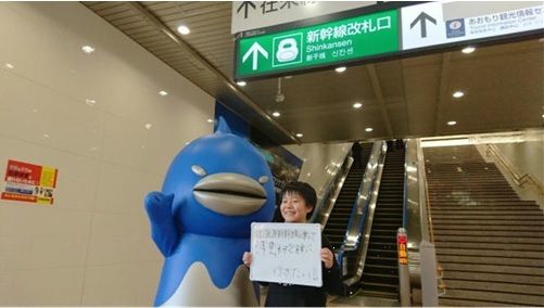 10時37分 新青森駅着 地元青森県のゆるキャラ「マギュロウ」