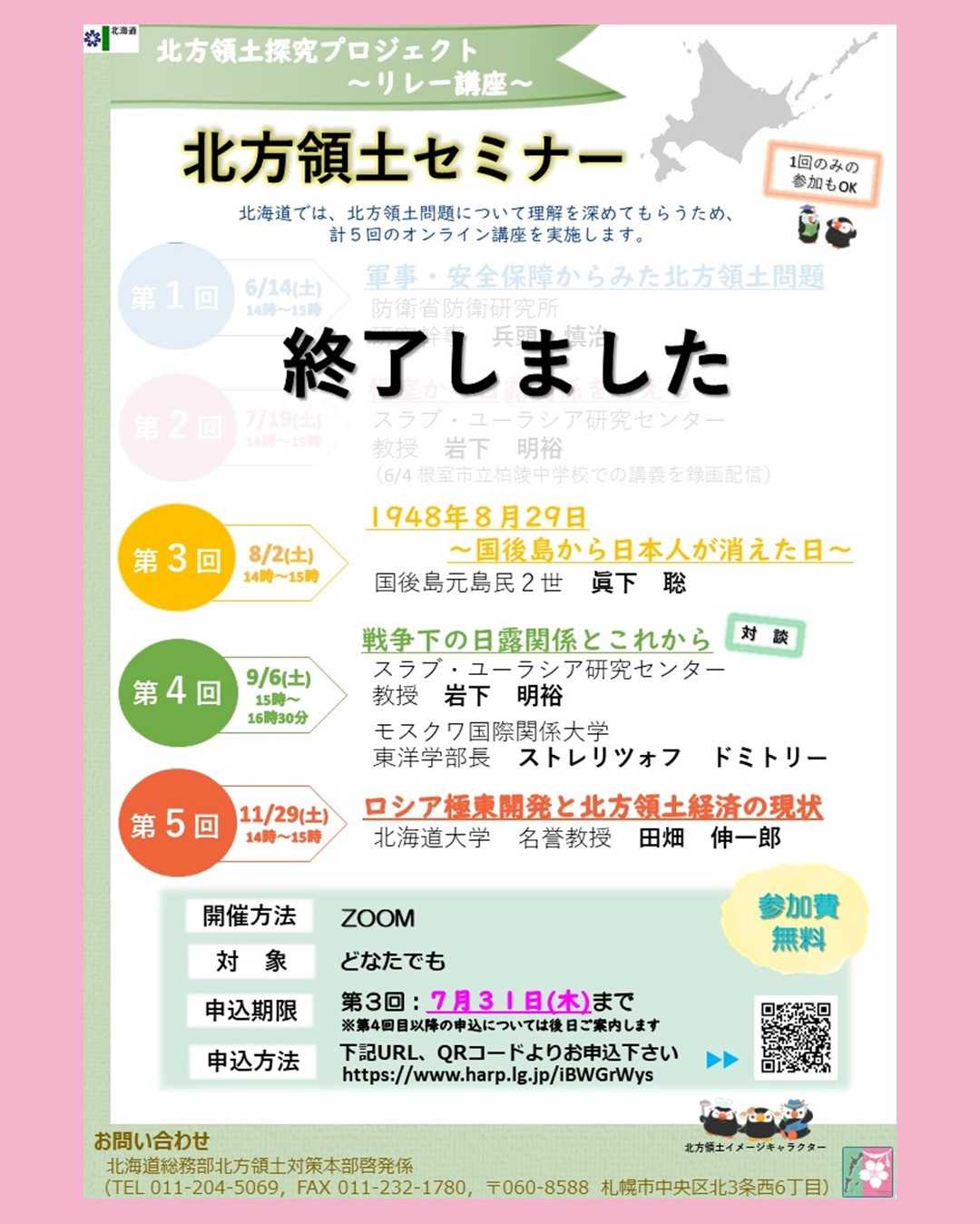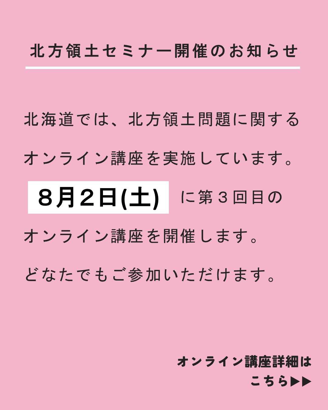 8月2 ( 土 ) に、第3回北方領土探究プロジェクト~リレー講座~『北方領土セミナー』を実施します。