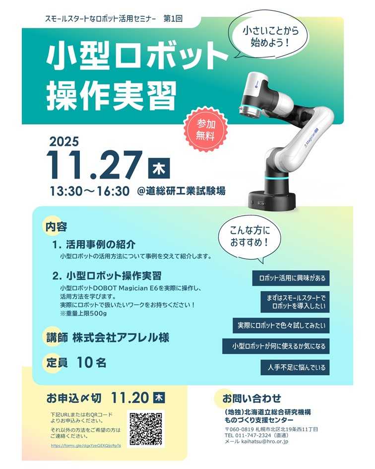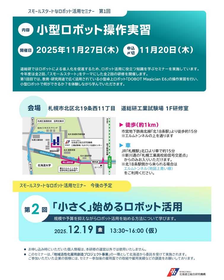 今年度は「スモールスタートなロボット活用セミナー」と題し、価格やスペース、規模を抑えて「小さく」ロボット活用を始めるためのセミナーを2回に分けて開催します。