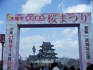 春爛漫♪ 各地で桜が満開になって、みなさんもお花見を楽しんでますね~! 私も先週末、大垣市墨俣の一夜城へお花見にいってきました~♪♪桜は満開!天気は晴れ!・・・しかし・・・風が強くてすごーーーく寒い日でした。満員かと思われた駐車上も・・・ 寒さで回転が速く空いてました・・・ でも、桜は満開!!写真では寒さが伝わらないほど、桜並木がきれいすぎます!!出店もいっぱいでした♪ おでんや串物など、あったかいものがたくさん売っていました♪わーーーい!!さて!宴会♪♪・・・といきたかったのですが・・・ あまりの突風と寒さで、お花見時間2時間余・・その後宴会は、屋内=家で(笑)なにはともあれ、綺麗な桜とおいしい食べ物で癒された休日でした♪(寒かった!!) ★一夜城(墨俣城)(のちの豊臣秀吉が美濃攻めのために、一夜で築いたという逸話が有名なお城です)やっぱり桜は日本の美ですね♪翌日はとってもあたたかくてお花見日よりだったので、同僚の話ではとっても混雑してたようです。楽しめる期間もあと少し!!皆様も是非~♪P.N HAMA子
