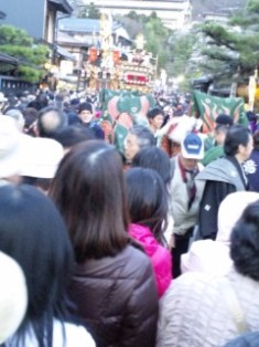 飛騨はまだまだ寒い日が続きますが、高山の春の風物詩「高山祭り」を見に行ってきました。高山祭りは春の山王祭と秋の八幡祭を総称した呼び方で、毎年、春は4月14・15日、秋は10月9日・10日に行われます。 高山祭りといえば、屋台のからくり奉納が有名ですが、今回は平日で見に行けず...。14日の宵祭りだけ、見に行きました。 まず、目指すは中橋!お天気カメラなどで映る、赤い橋。と言えばイメージ出来るでしょうか?春の宵祭りは各屋台が中橋をスタートして、街を順に回りながらそれぞれの屋台蔵に帰って行くのです。 中橋に着くと、すでにすごい人!皆さんカメラ片手に、屋台をパシャパシャ撮っています。屋台を間近で見られることって、なかなか無いですからねぇ~。 6時半を少し回ったころ、提灯に灯がともり、獅子舞・神楽を先頭に屋台がゆっくりと動き始めました。ライトアップされた橋と、提灯をたくさんつけた屋台。幻想的です。ただ、もう少し桜が咲いていれば、もっとキレイだったのに。残念...。 今年の八幡祭は3連休だから、今回こそはからくり奉納を見に行こう!と、たこ焼きをハフハフ食べながら、早くも秋に思いを馳せる、お祭り好きなワタクシでした。 皆様も、ぜひぜひ足を運んでください♪P.N ひだっ子
